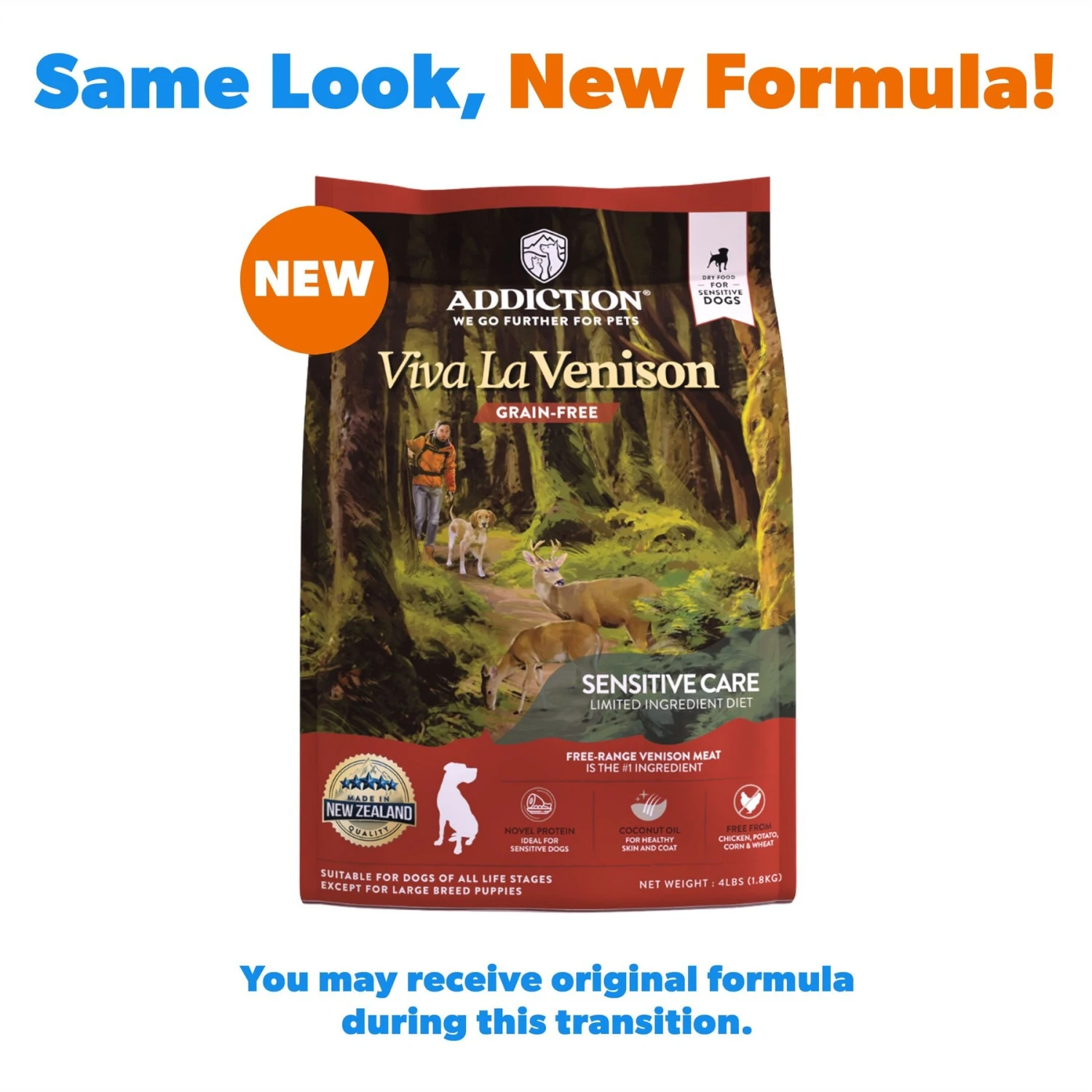 - Made with free-range New Zealand venison that is high in protein and lower in fat.