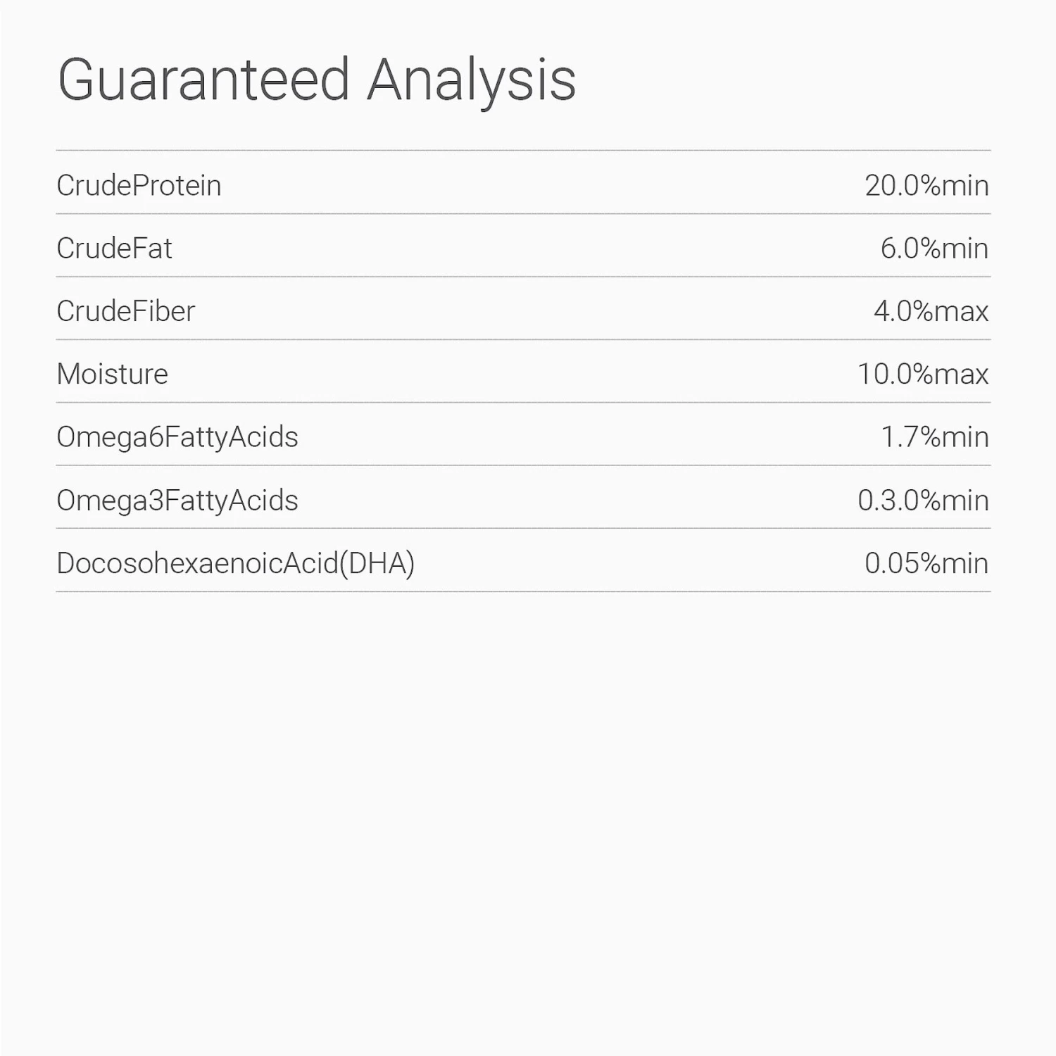 - With a wealth of benefits, including omega 3 and 6 fatty acids for healthy skin and coat, glucosamine and chondroitin for healthy joints, plus vitamin E to support immunity.