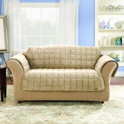 Sure Fit Farmhouse Basketweave One Piece Slipcover With Ties & Cinched Seat Elastic Dog & Cat Cover