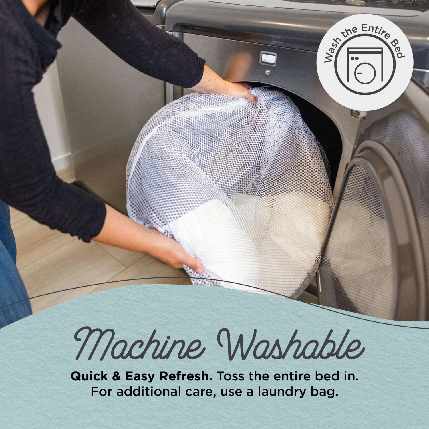 - Entire bed is machine washable and can be tumble dried on low for easy cleaning.
