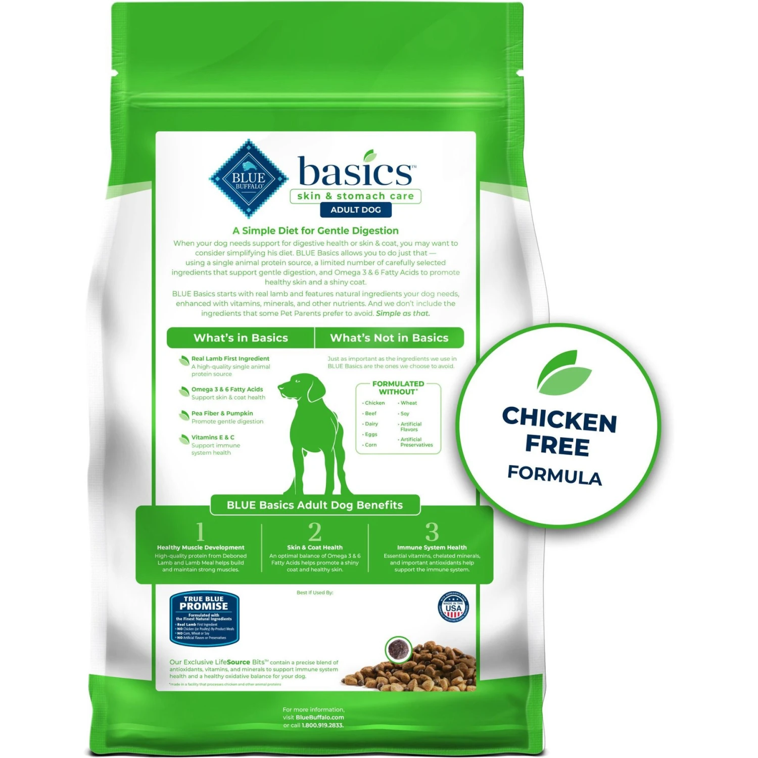 - Blue Buffalo Basics is a limited ingredient, grain-free dog food that doesn’t contain any chicken, beef, corn, wheat, soy, dairy or eggs—making it a good option for dogs with food sensitivities.
