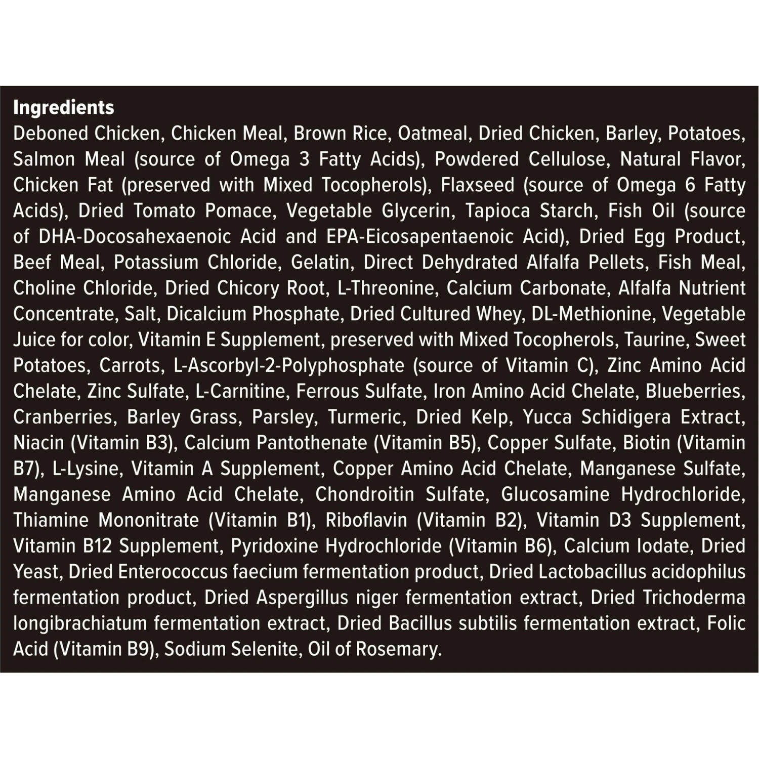 - Free from chicken and poultry by-product meals, corn, wheat, soy, artificial flavors, and preservatives!