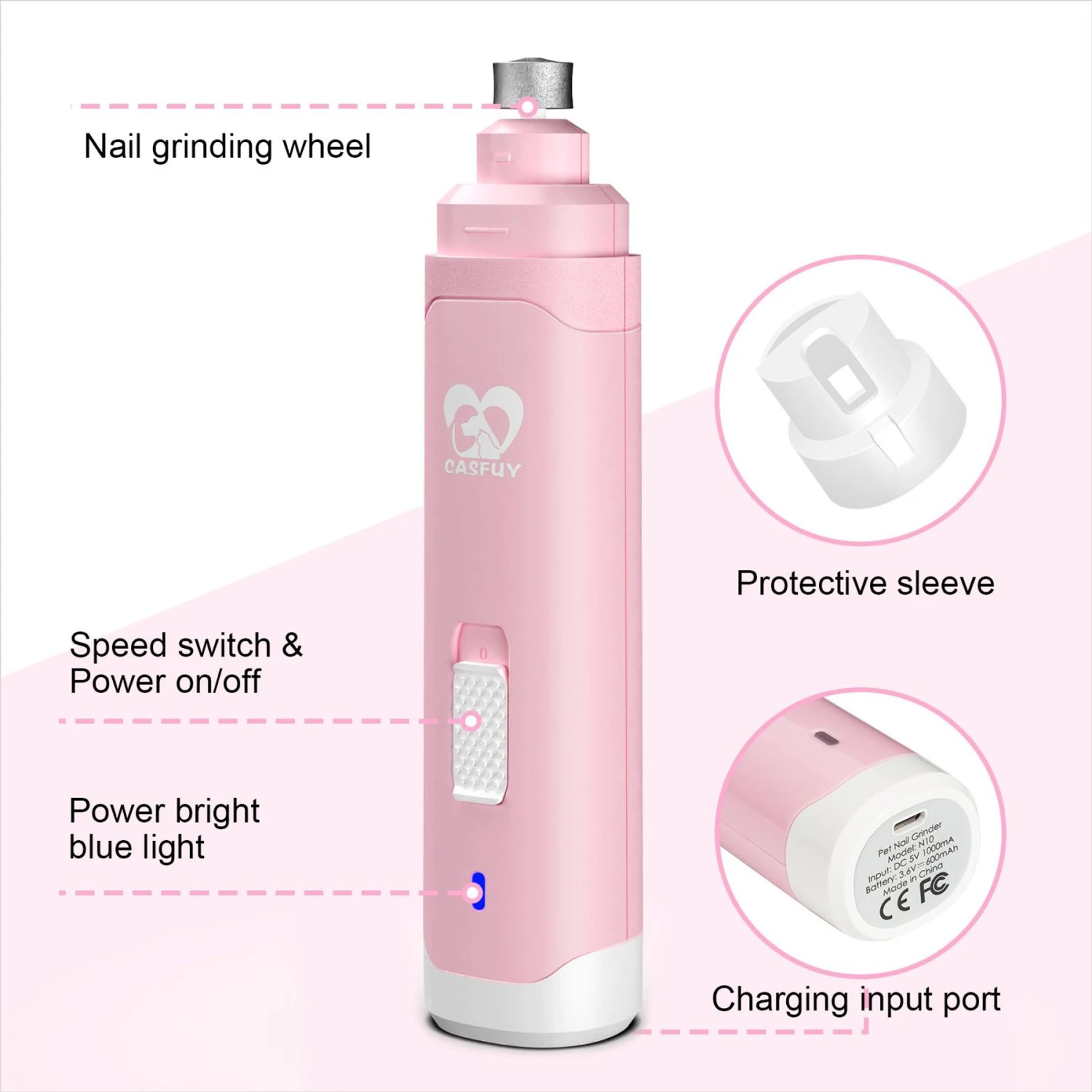 Casfuy 2-Speed Electric Dog Nail Grinder With LED Light, Purple