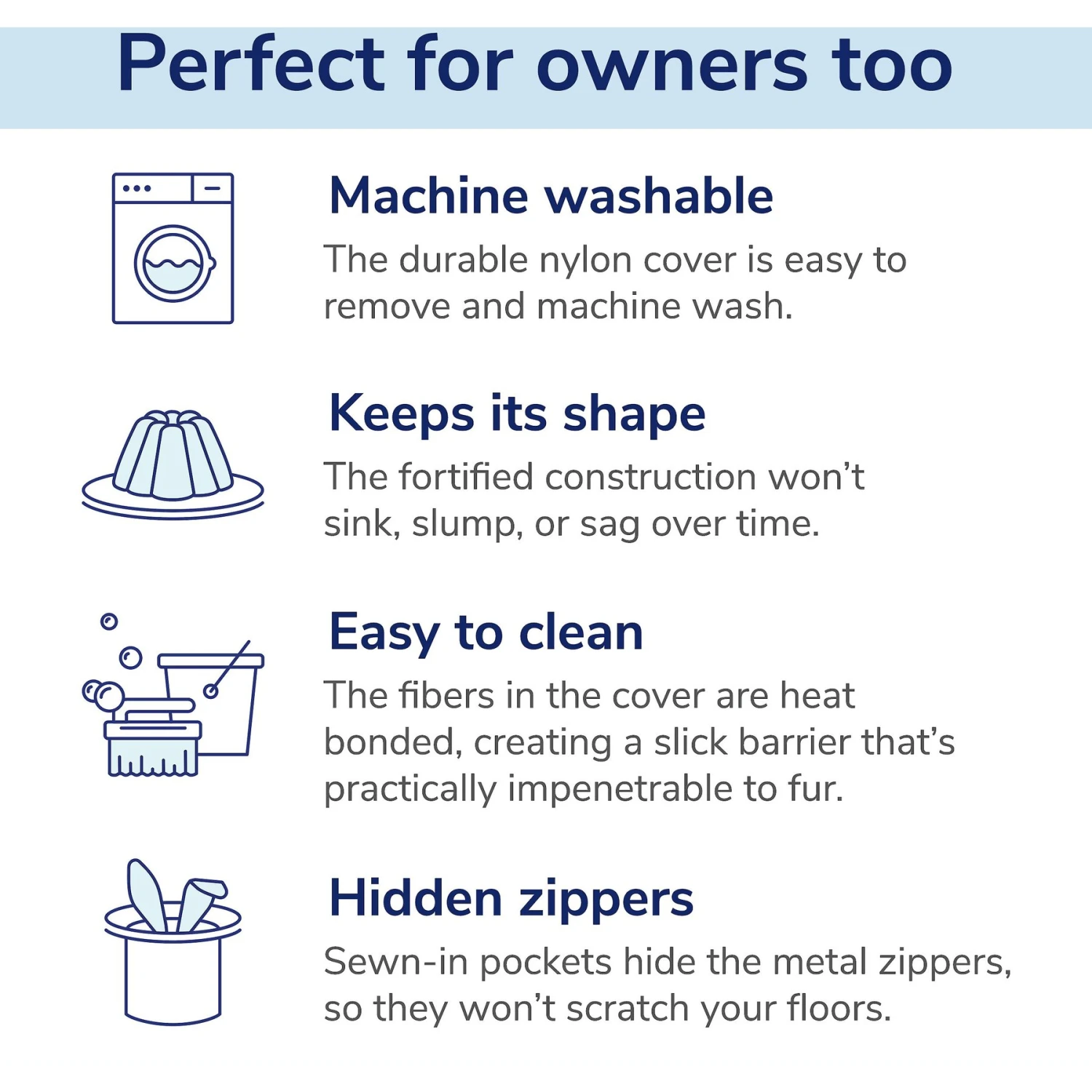 - Features sewn-in pockets that hide the metal zippers, so they won’t scratch your floors.