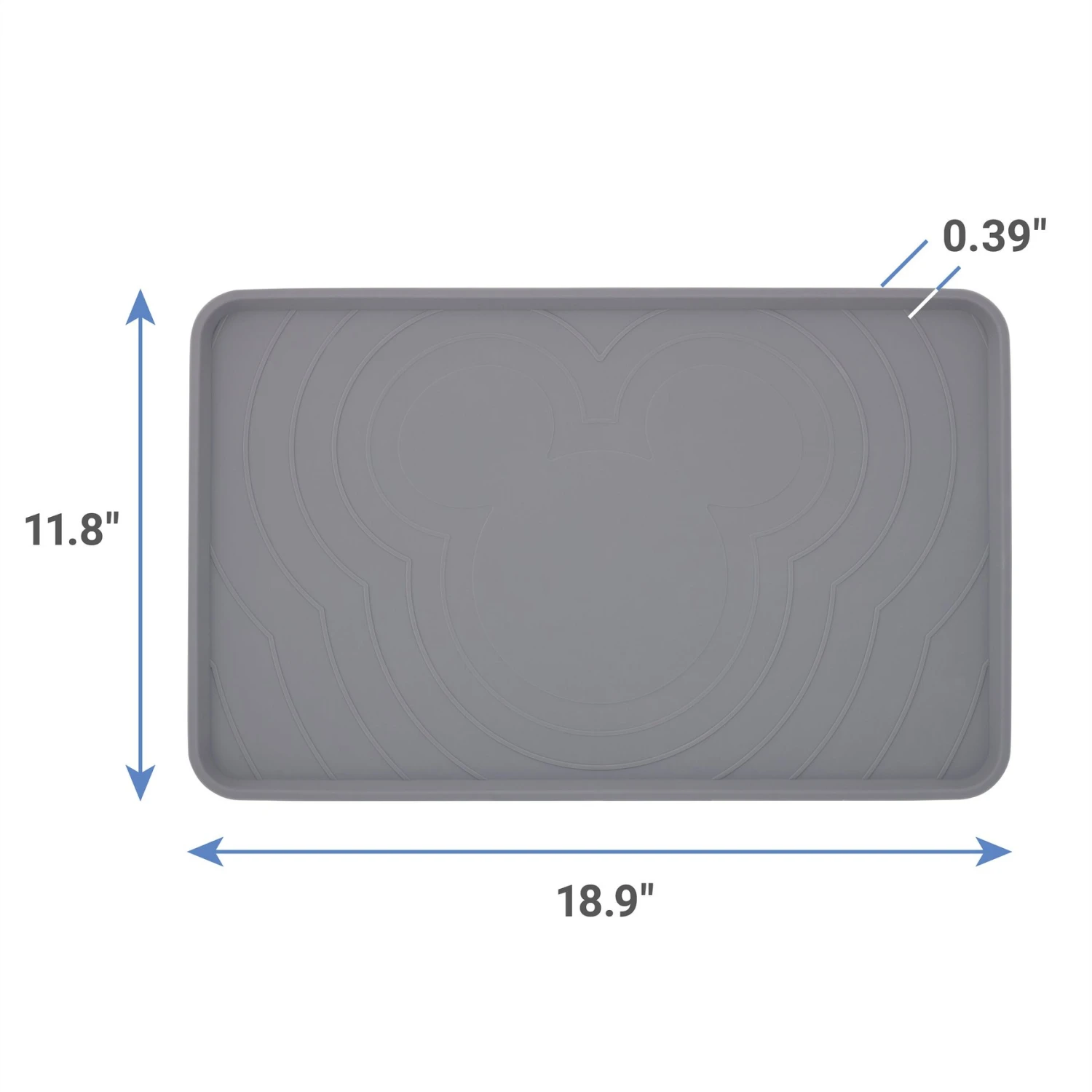 - Disney design food mat featuring Mickey’s silhouette and available in red or grey.