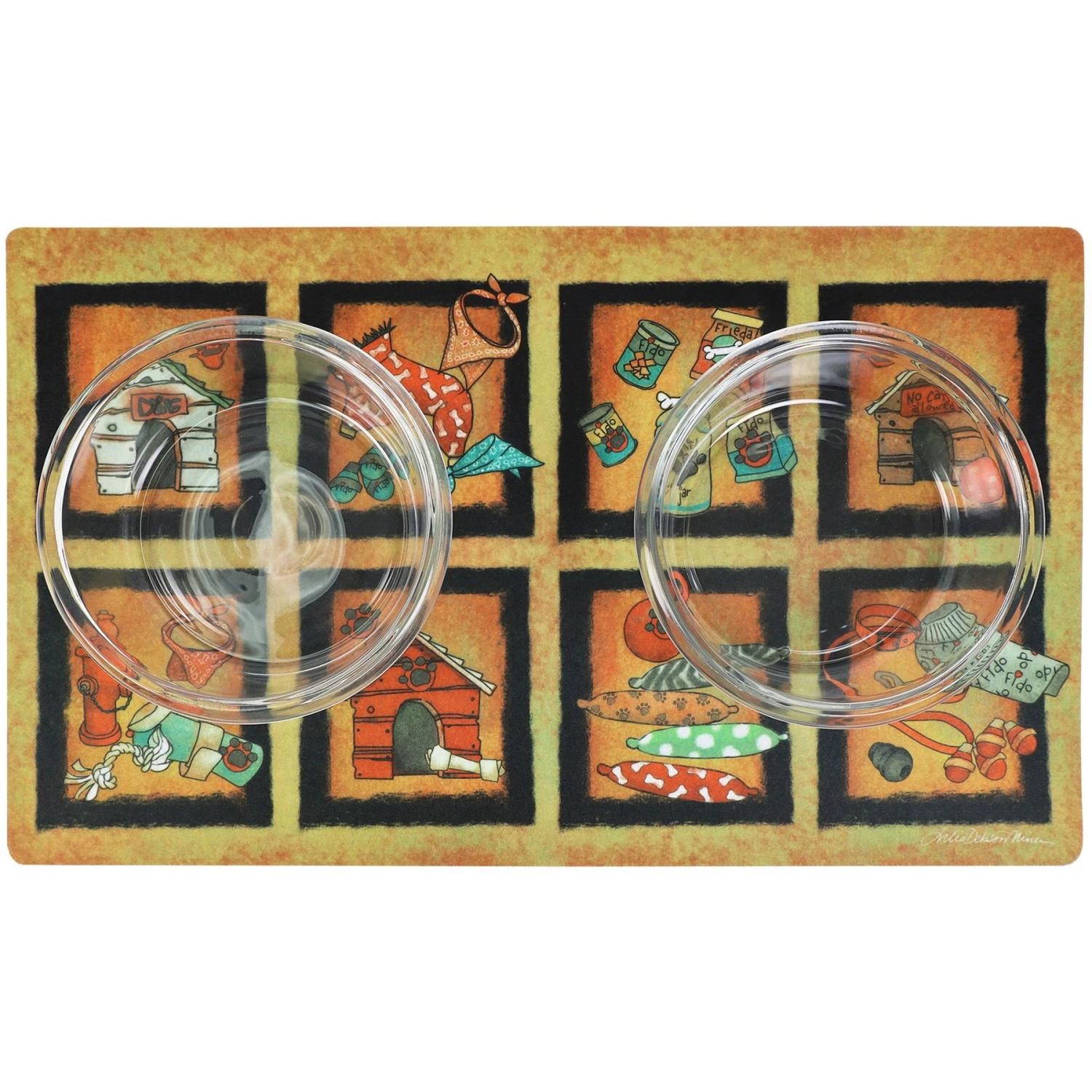 - Bow wow squares print placemat for dogs.