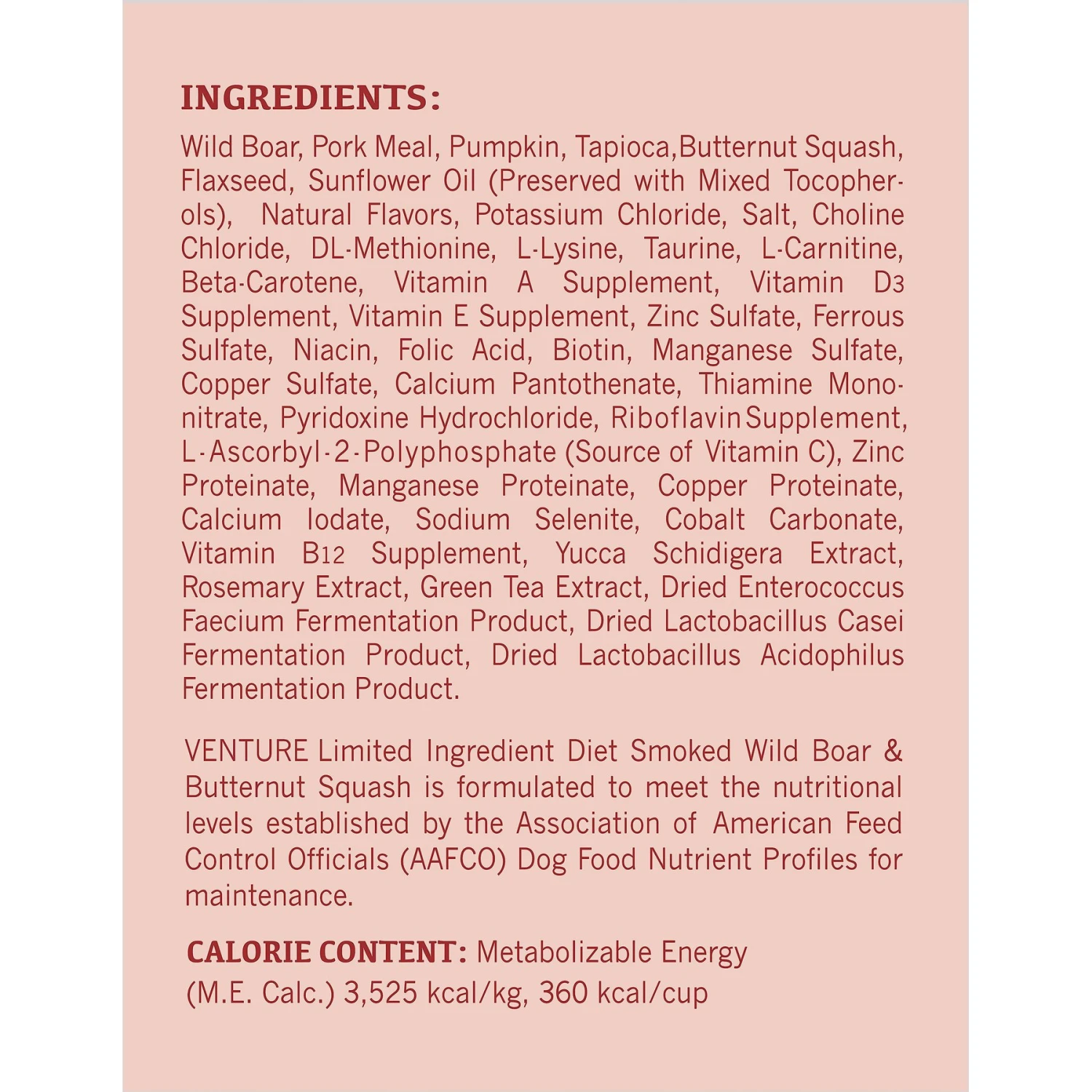 | Flavor | Alaska Pollock Meal & Pumpkin, Smoked Wild Boar & Butternut Squash, Rabbit Meal & Pumpkin, Duck Meal & Pumpkin, Roasted Lamb & Butternut Squash, Turkey Meal & Pumpkin |