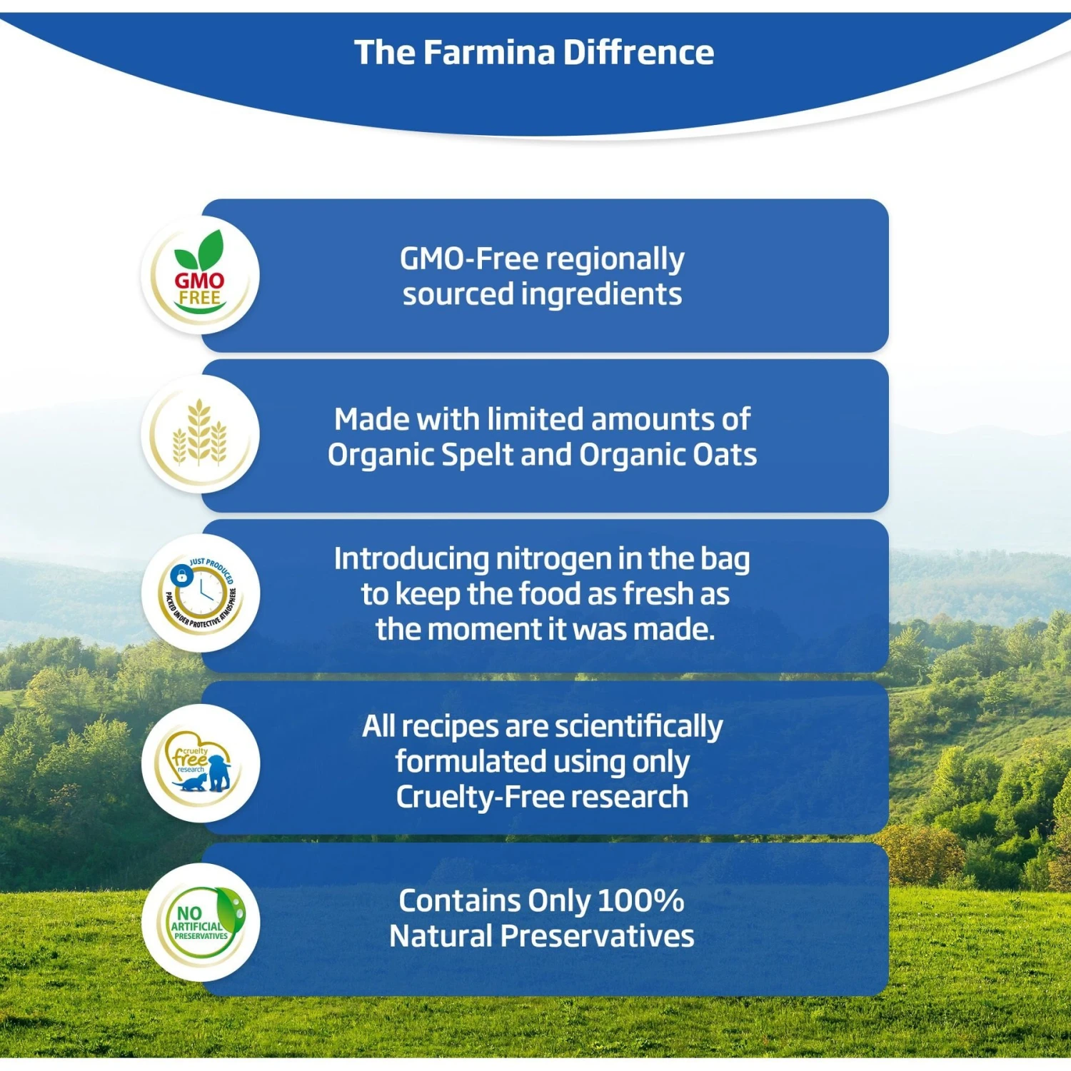 - Puppy food that’s comprised of a limited amount of low glycemic index grains, including spelt and oats.