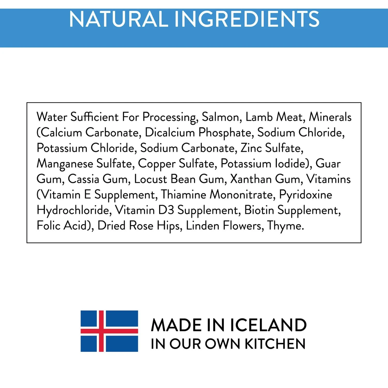- Made from 100% Icelandic salmon and lamb that’s free of oxytetracycline and never intensively-farmed.