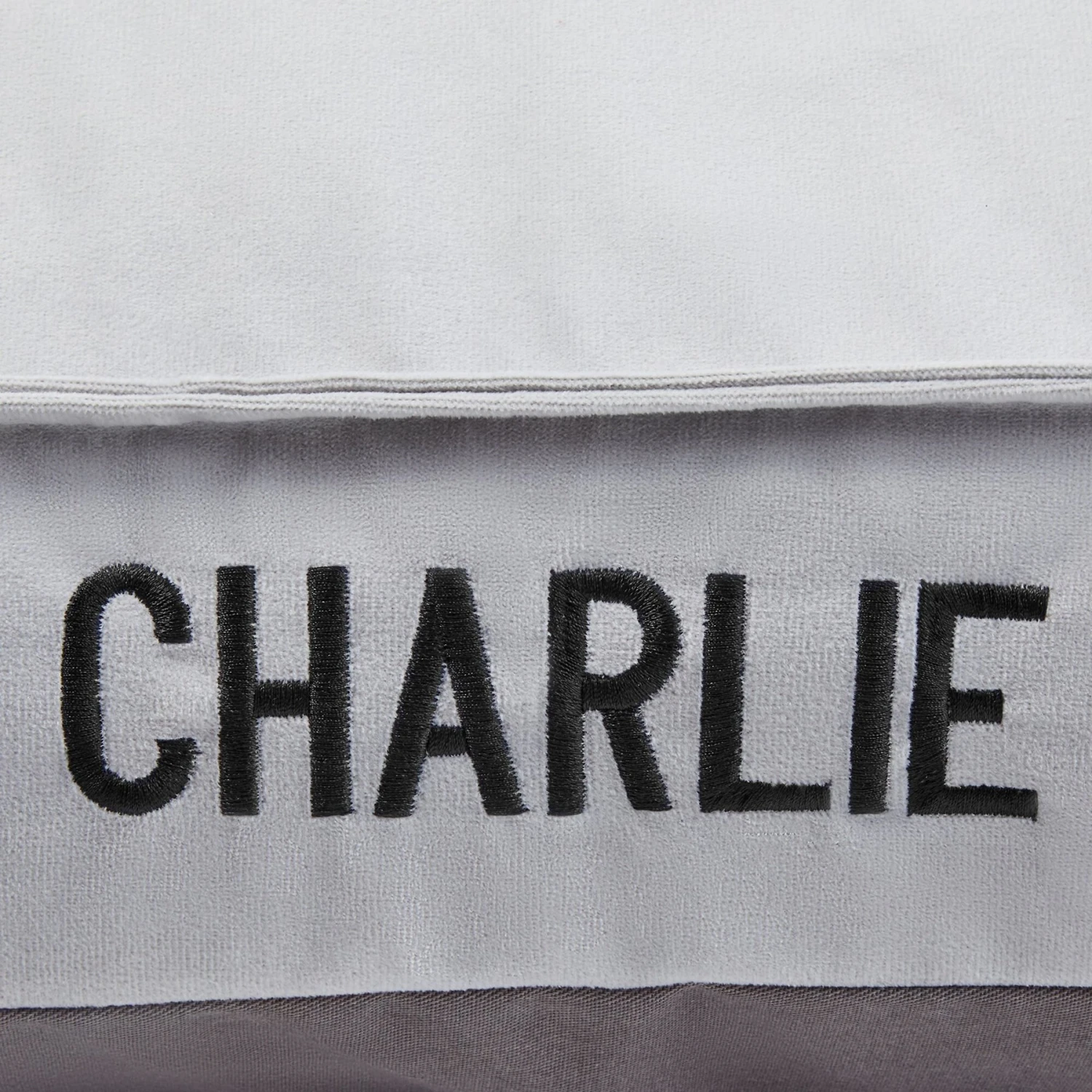 Be the first to review “Frisco Personalized Silver Bolstered Bed With Silver Check Bolster” Cancel reply