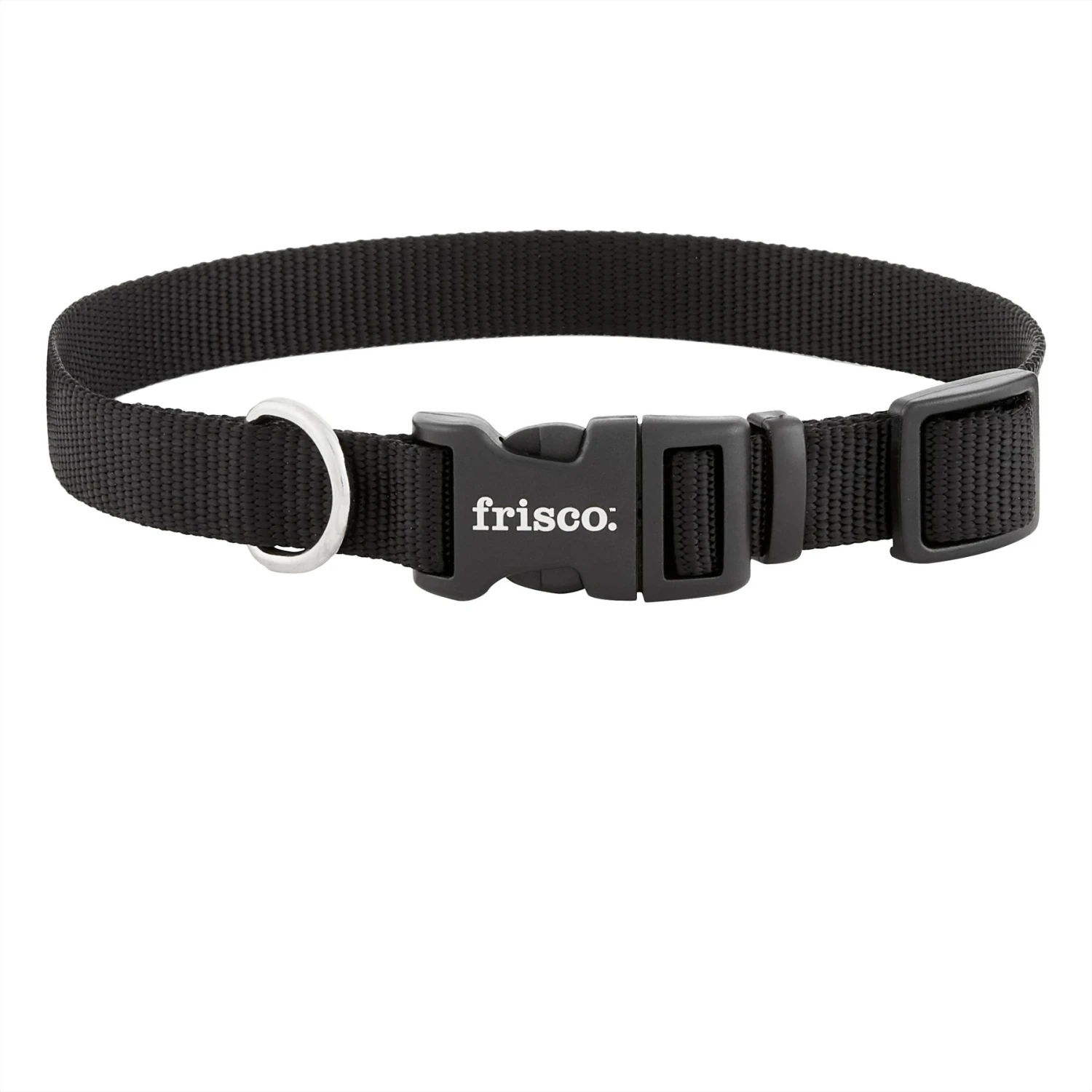 Frisco Solid Nylon Dog Collar, Black, Small: 10 to 14-in neck, 5/8-in wide — Remember to measure your pet for the paw-fect fit. The Frisco Solid Nylon Dog Collar is a classic yet stylish collar that comes in a variety of colors and sizes so you can find just the right one for your dog. Designed for everyday wear, this collar prepares your pup for adventures outdoors and provides comfort and security during your daily walks.