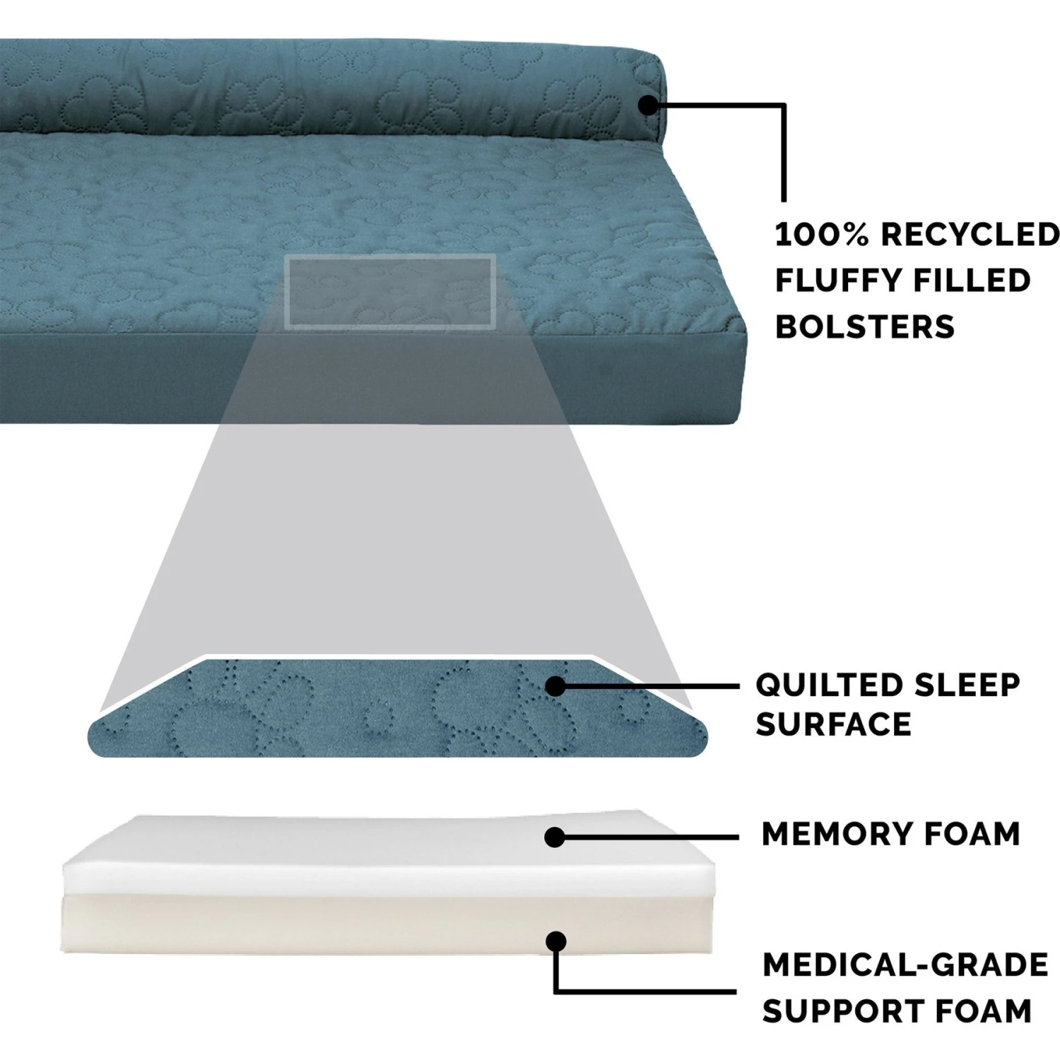 - Fluff-filled bolster railings support the neck, back, hips, and joints to ease discomfort and encourage restful sleep.