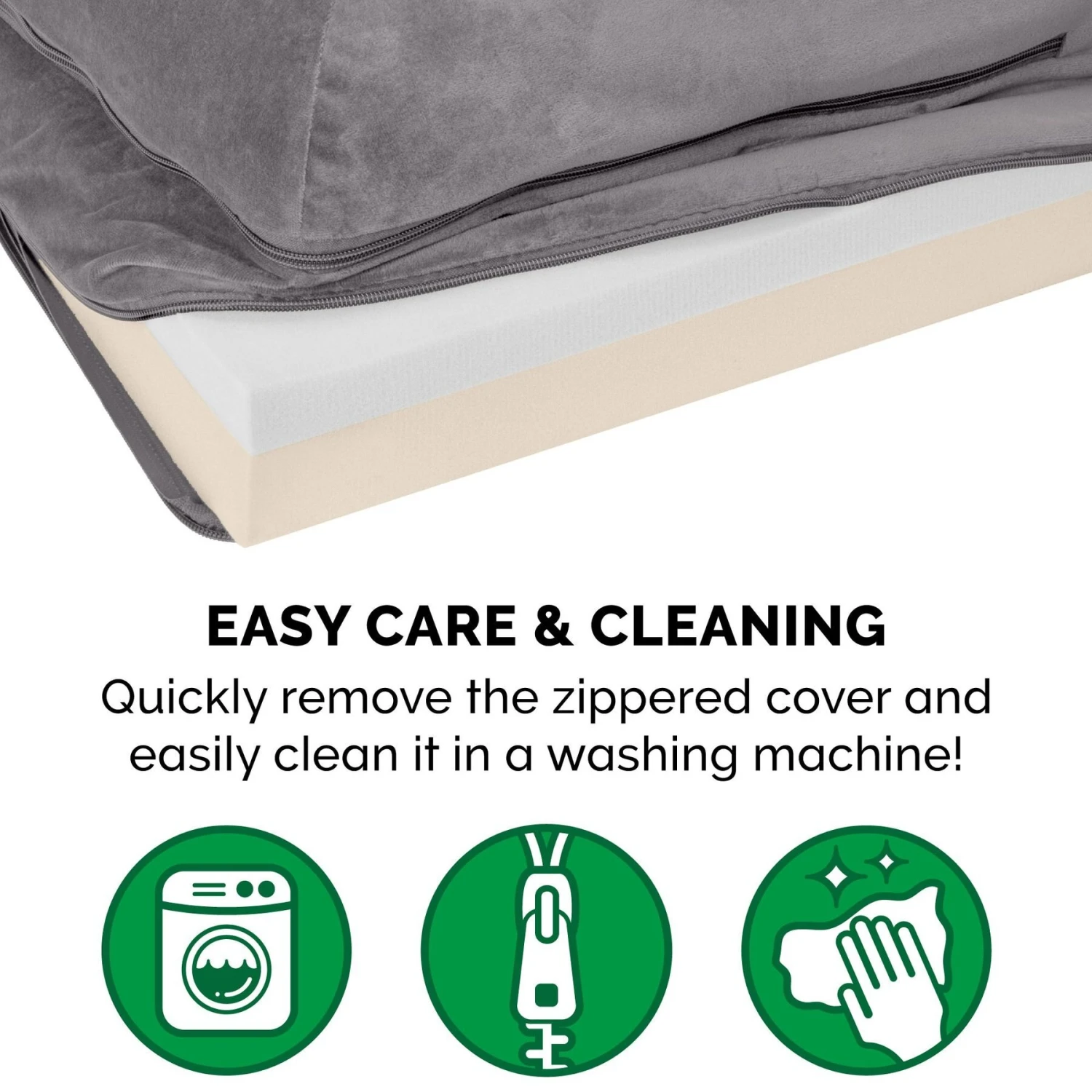 - Includes a zippered, removable cover that is machine washable.