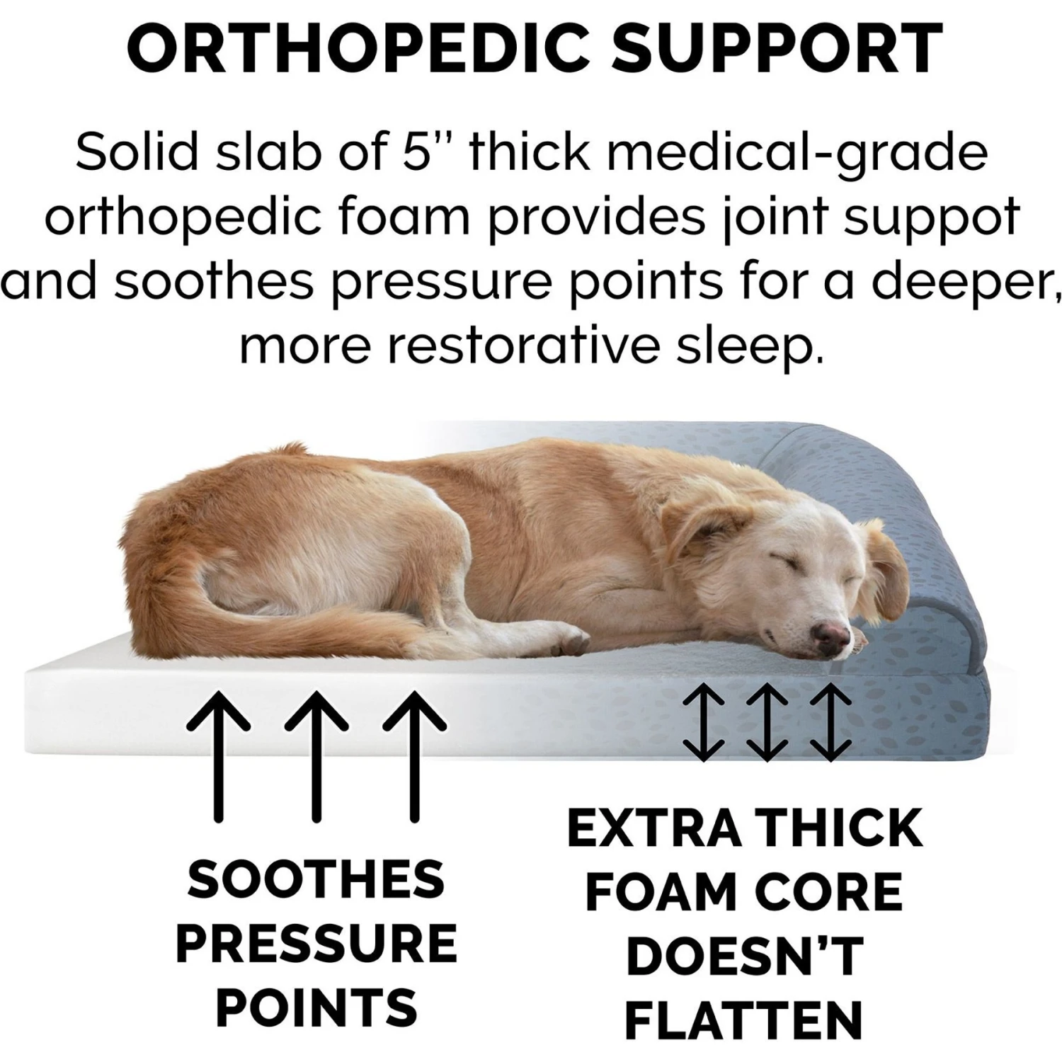 - Fluff-filled bolster railings support the neck, back, hips and joints to help ease discomfort and encourage restful sleep.