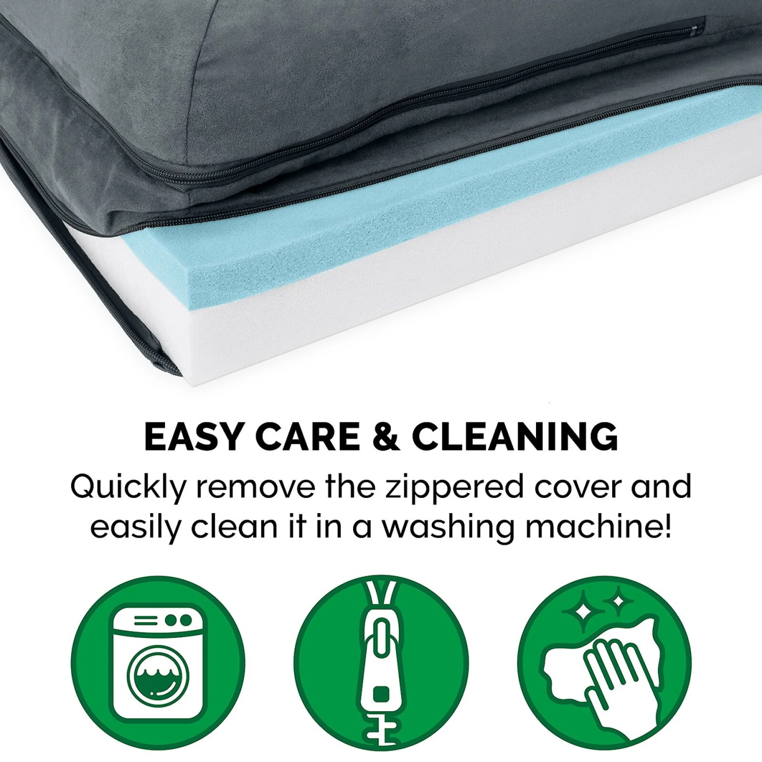 - Removable cover is machine washable for easy cleaning.