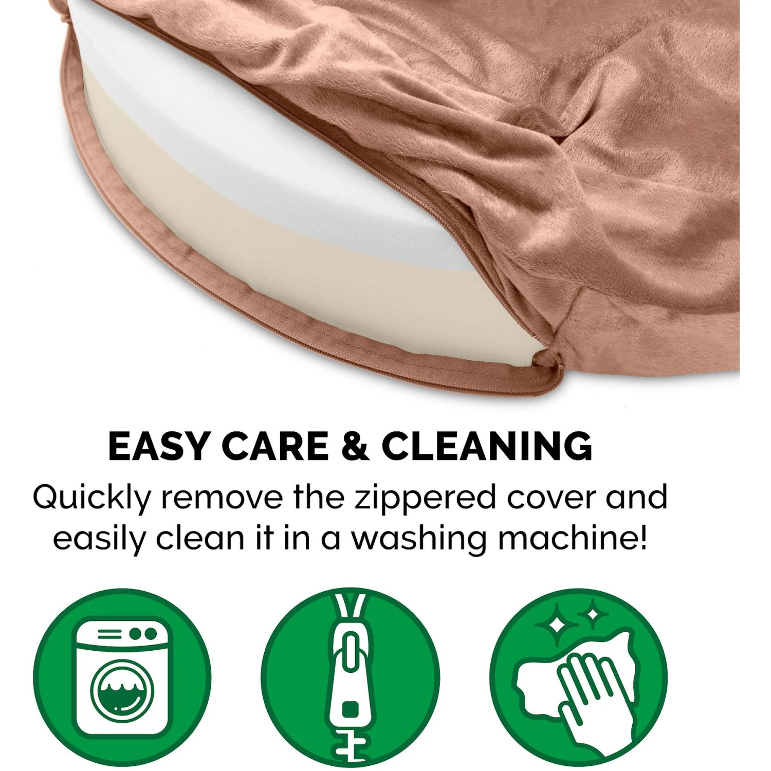 - Zippered and removable cover is machine-washable and the foam core can be spot cleaned.