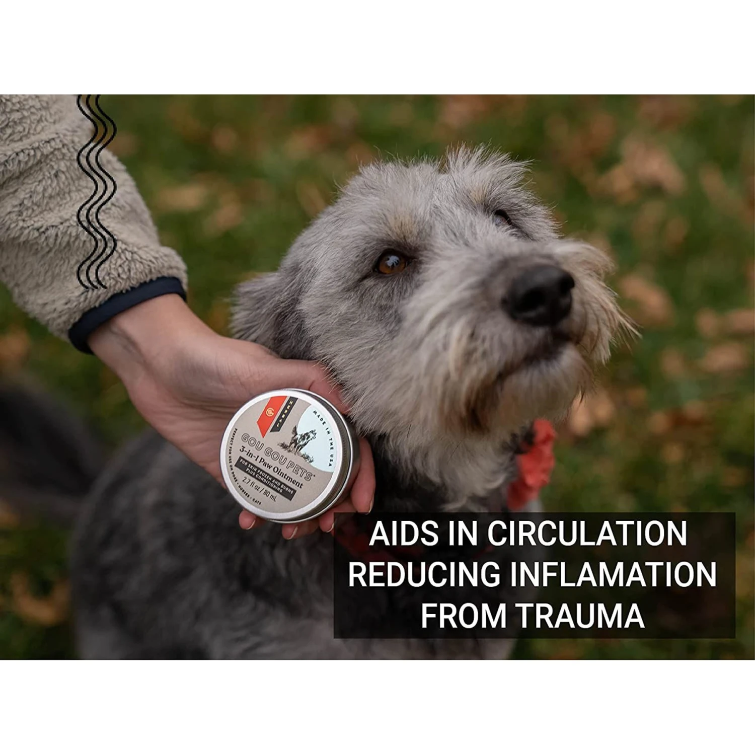 - Eases swelling, discomfort, blistering and discoloration, moisturizes and conditions cracked skin and cracked paws.