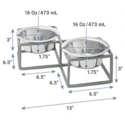 Frisco Premium Wood Elevated Bone Shape Stainless Steel Double Diner Dog & Cat Bowl, 3 Cup