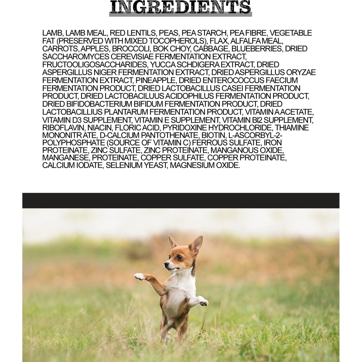 - Made with lamb as the first ingredient and uses a single protein source with a concentration of animal proteins.