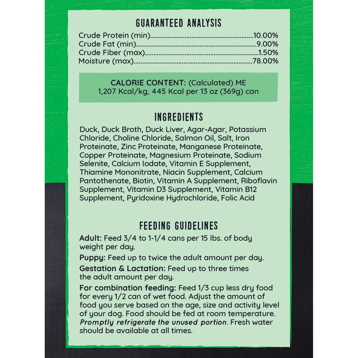 - Real duck is the first ingredient, and this tasty food is also packed with vitamins B12, D3 and E for optimal nutrition.