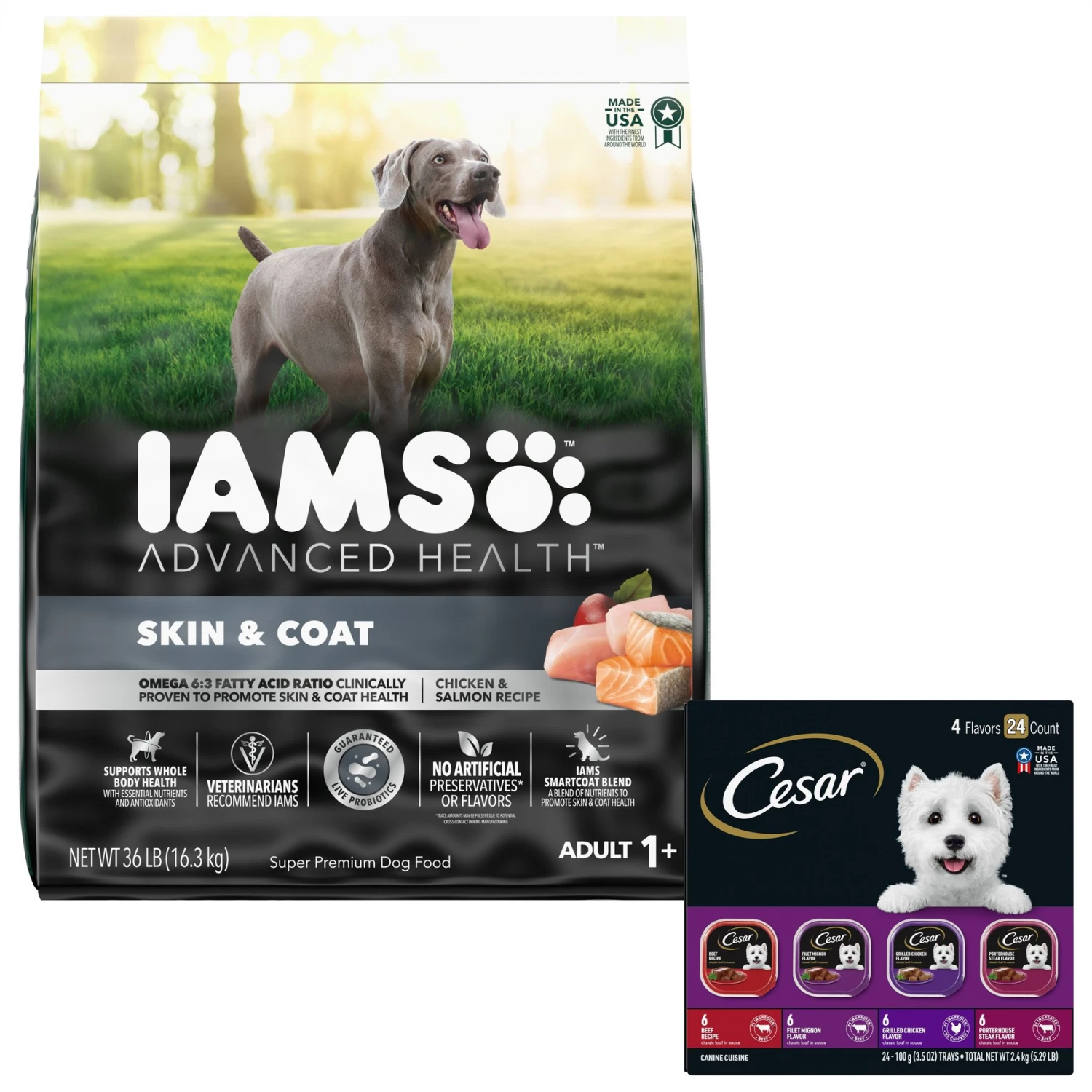 Be the first to review “Iams Advanced Health Skin & Coat Chicken & Salmon Recipe Adult Dry Dog Food & Cesar Classic Loaf In Sauce Beef Recipe, Filet Mignon, Grilled Chicken & Porterhouse Steak Flavors Variety Pack Grain-Free Small Breed Adult Wet Dog Food Trays” Cancel reply