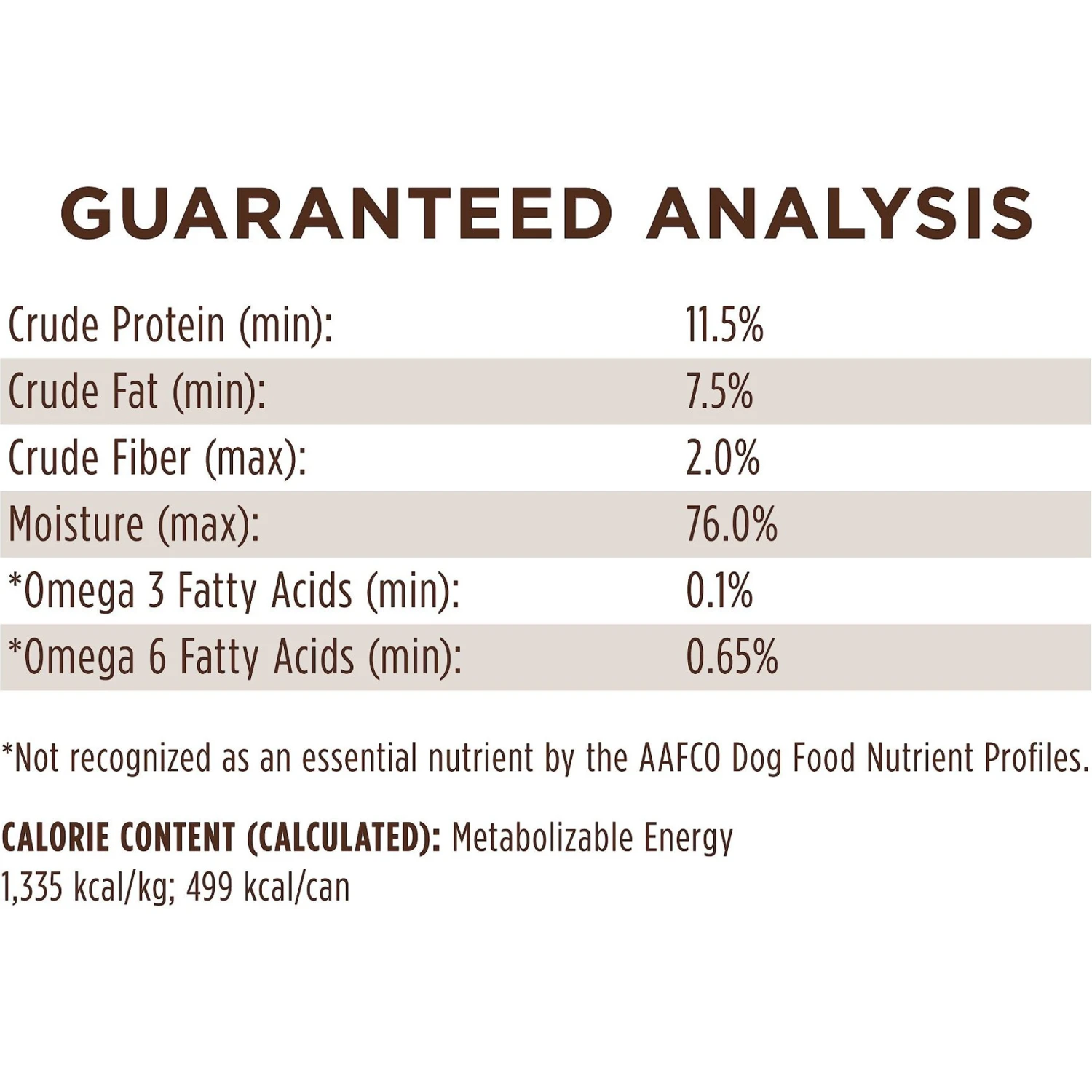- Features a purposefully simple ingredient list for dogs with food sensitivities–just one animal protein and one vegetable.