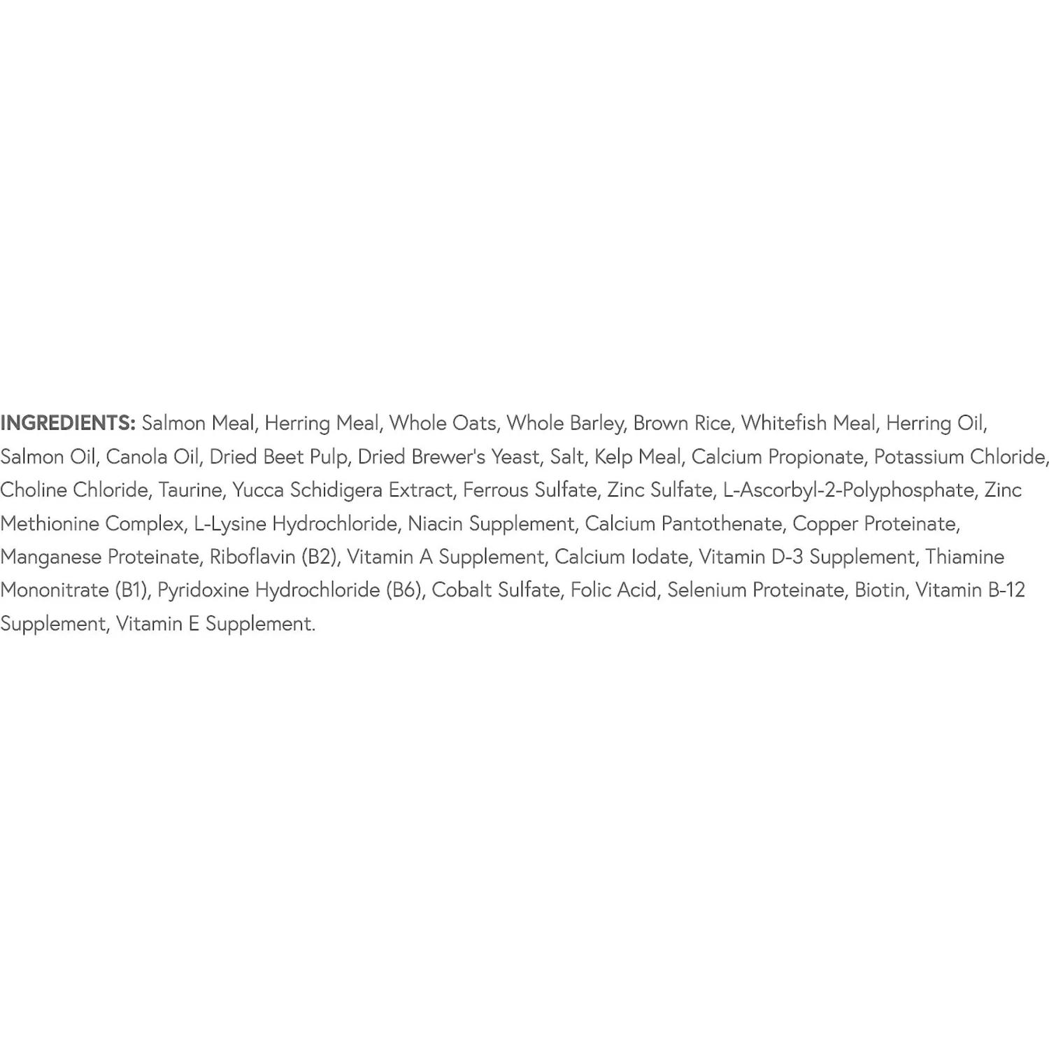 - Crafted with 100% ocean-sourced animal protein, including herring, salmon and white fish.
