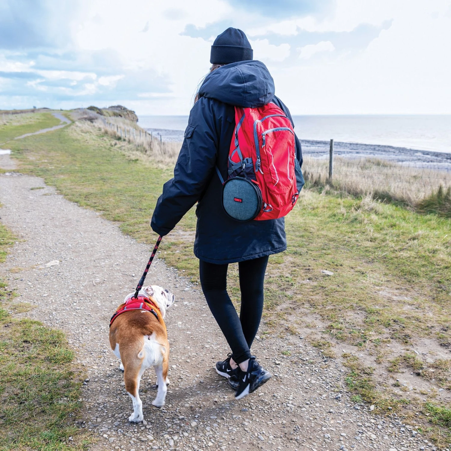 - Waterproof inner lining lets it do double duty as a water container or a wet and dry dog food bowl.