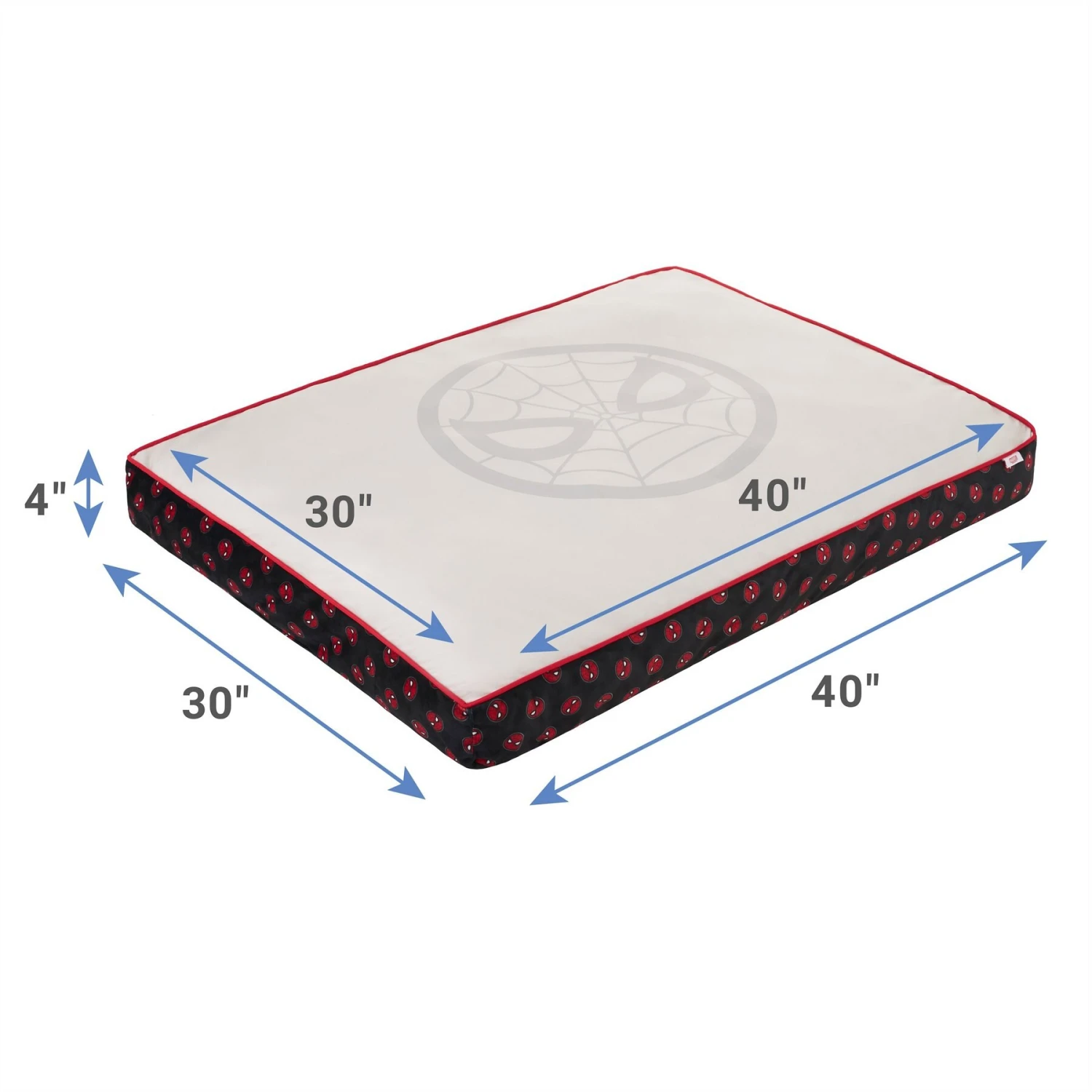 - Spider-Man design features Spidey’s face on the pillowtop and in a pattern on the side.