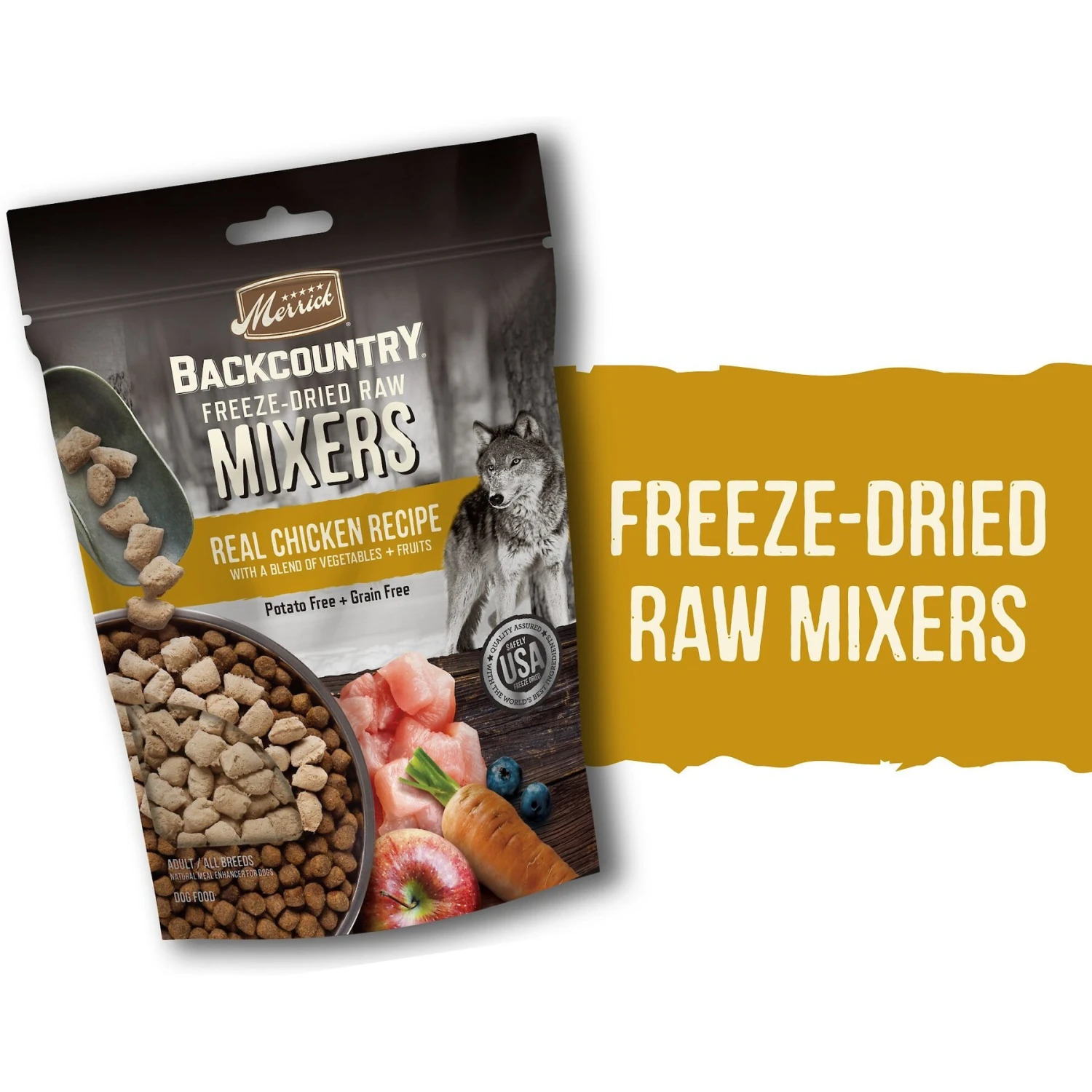 - Real, deboned chicken is the first ingredient in this mixer, giving your pal the natural, high-quality protein he needs to maintain lean muscle mass.