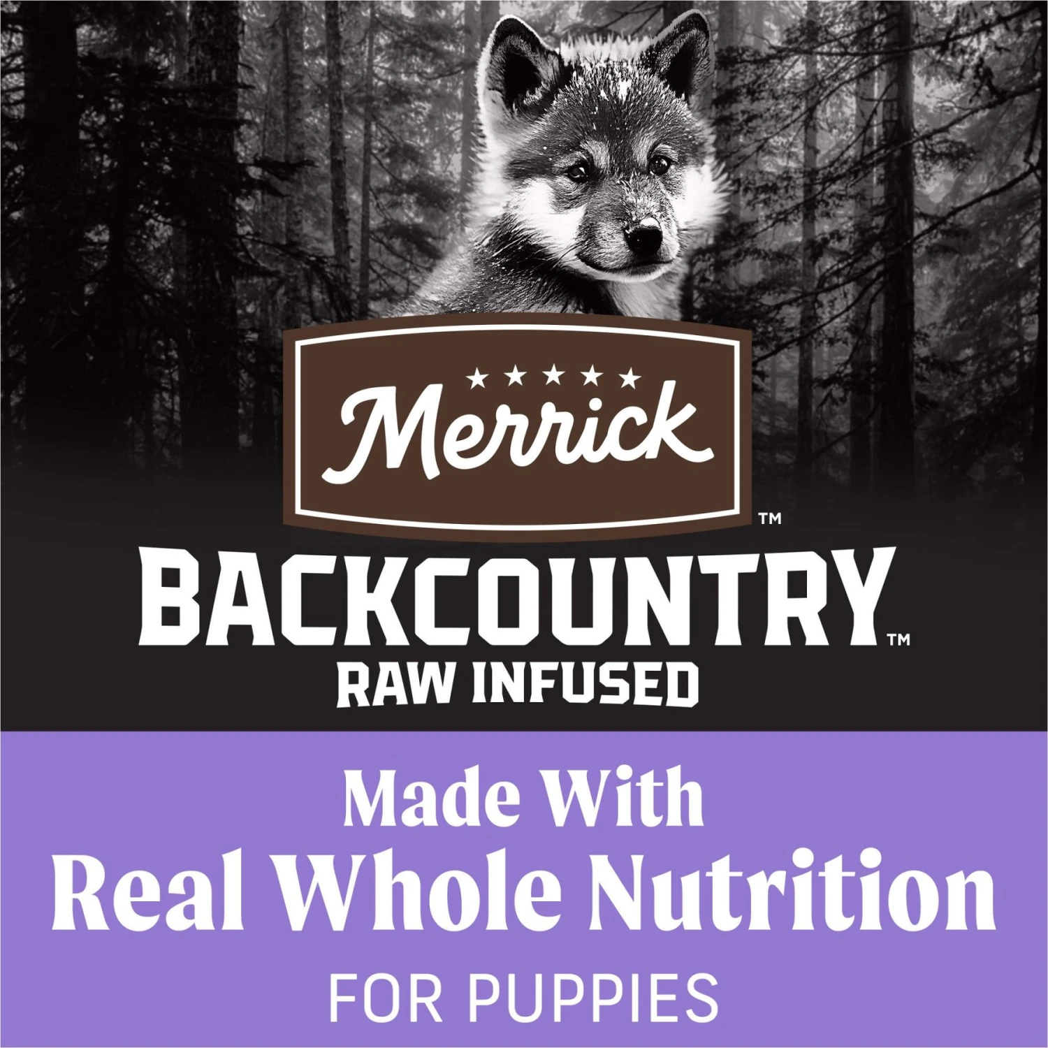 - This Merrick Backcountry recipe is specially formulated to help meet your growing puppy’s unique dietary needs.