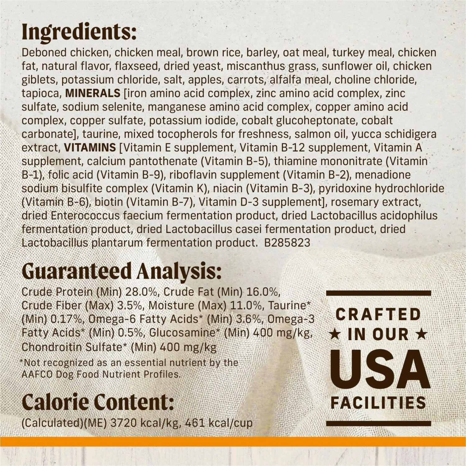 - This coated kibble offers high levels of glucosamine and chondroitin to support your pup’s healthy hips and joints.