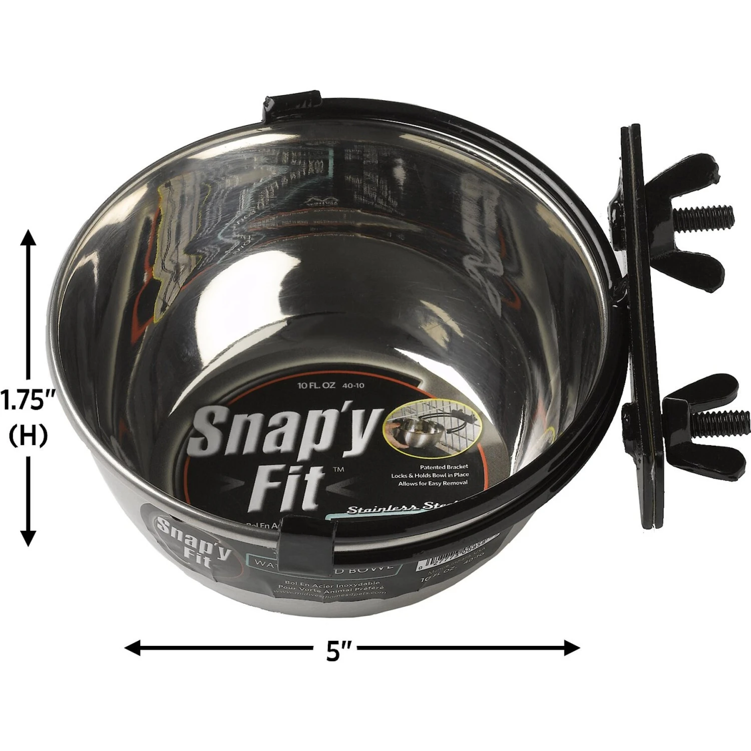 - Patented Bracket Locks and Holds durable Stainless Steel bowl in place – allows for easy removal.