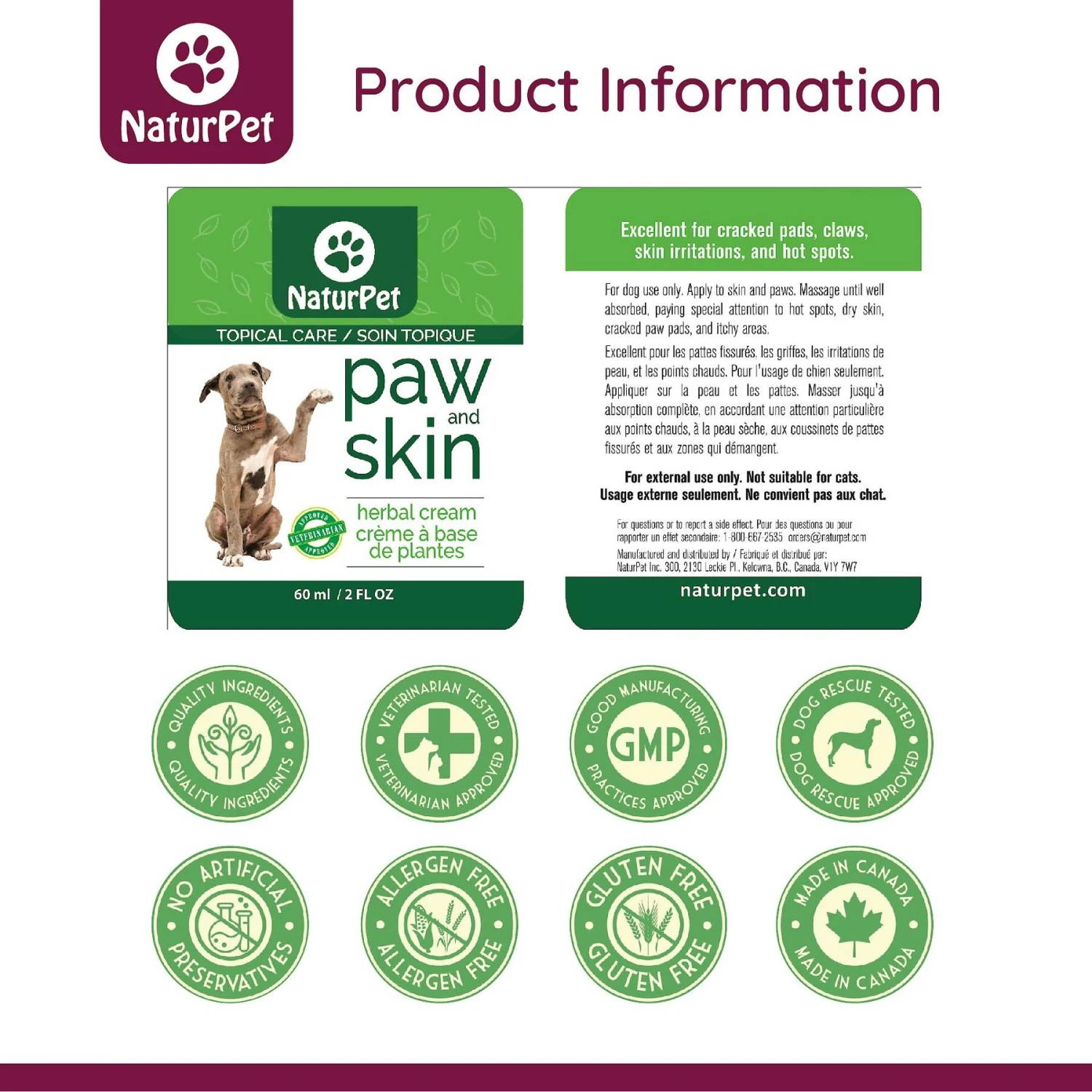 - Herbal cream supplement that helps protect, heal and soothe your paw-tner’s skin and paws.
