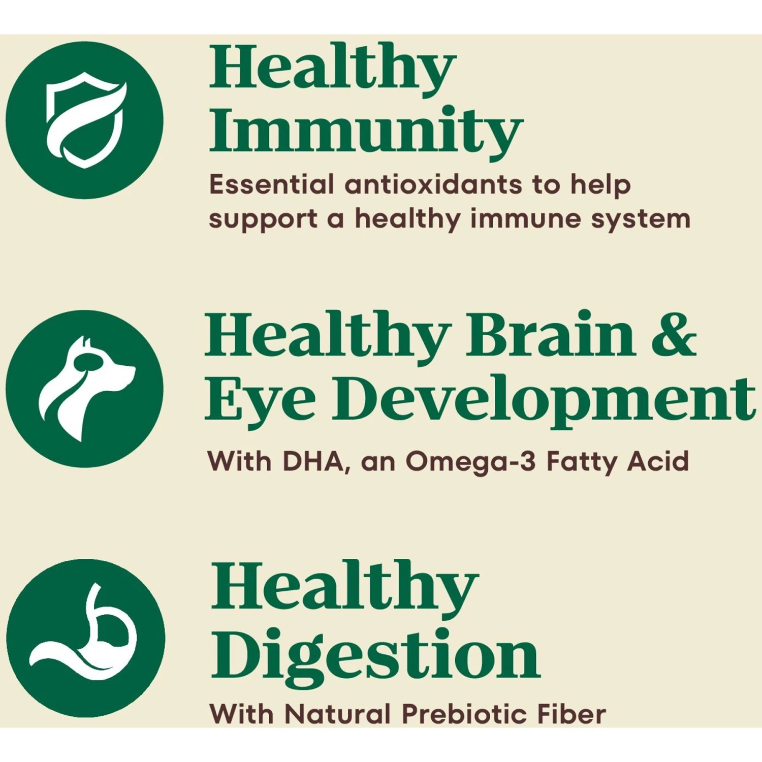 - Made with natural fiber and omega-6 and -3 fatty acids to help support healthy digestion and healthy skin and coat.