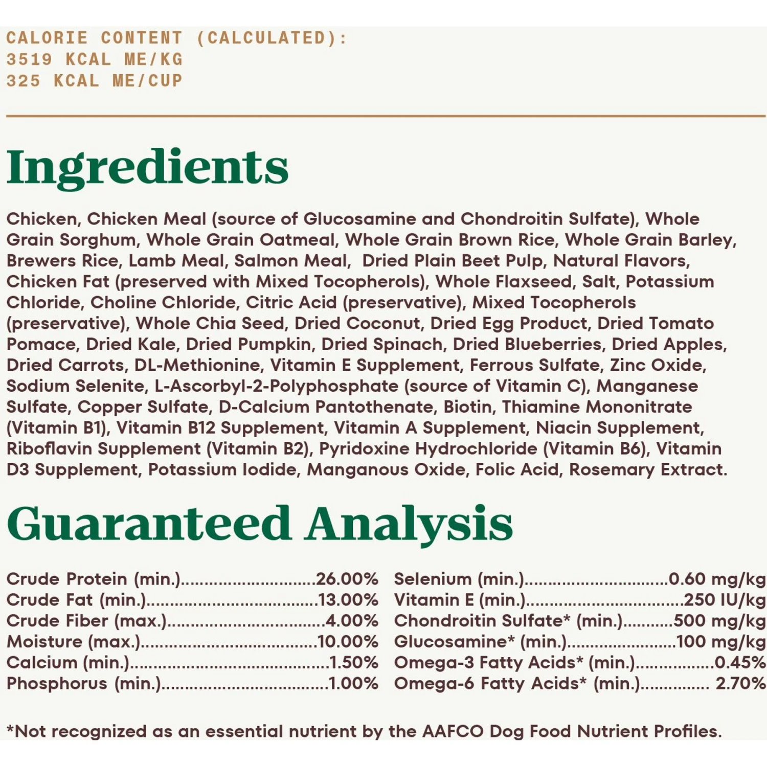 - Chicken is the #1 ingredient and omega-3 and -6 fatty acids help support your aging canine’s healthy skin and a radiant coat.