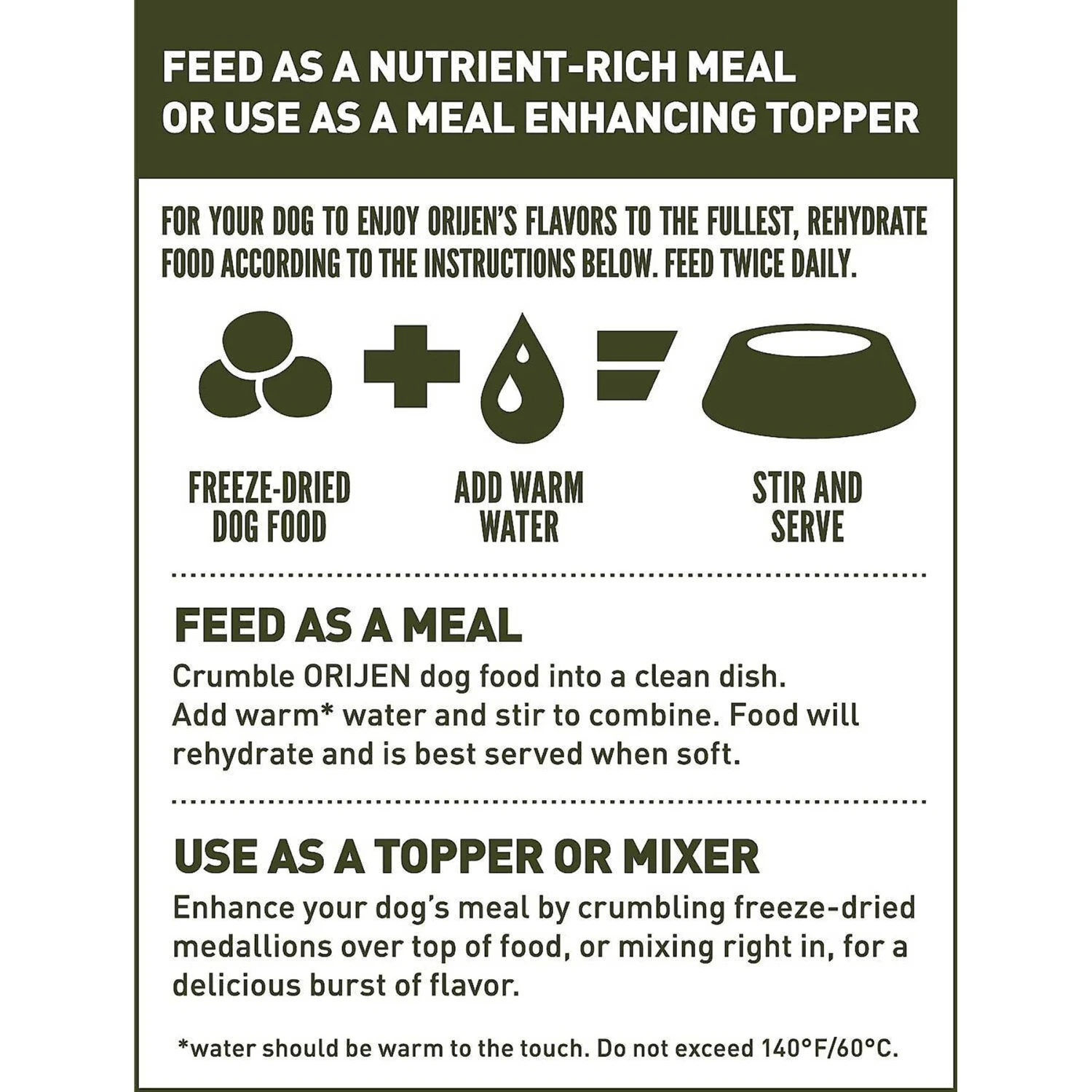 - Use this grain-free food as a nutrient-rich meal or as a delicious dog food topper!