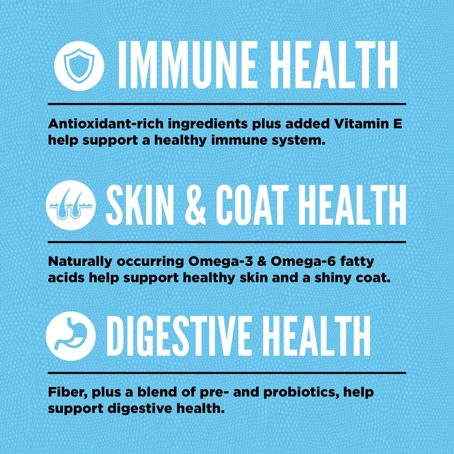 - The grain-free and chicken-free recipe offers a biologically appropriate diet packed with nutrients to help support your dog’s immune system, skin, coat and digestion.