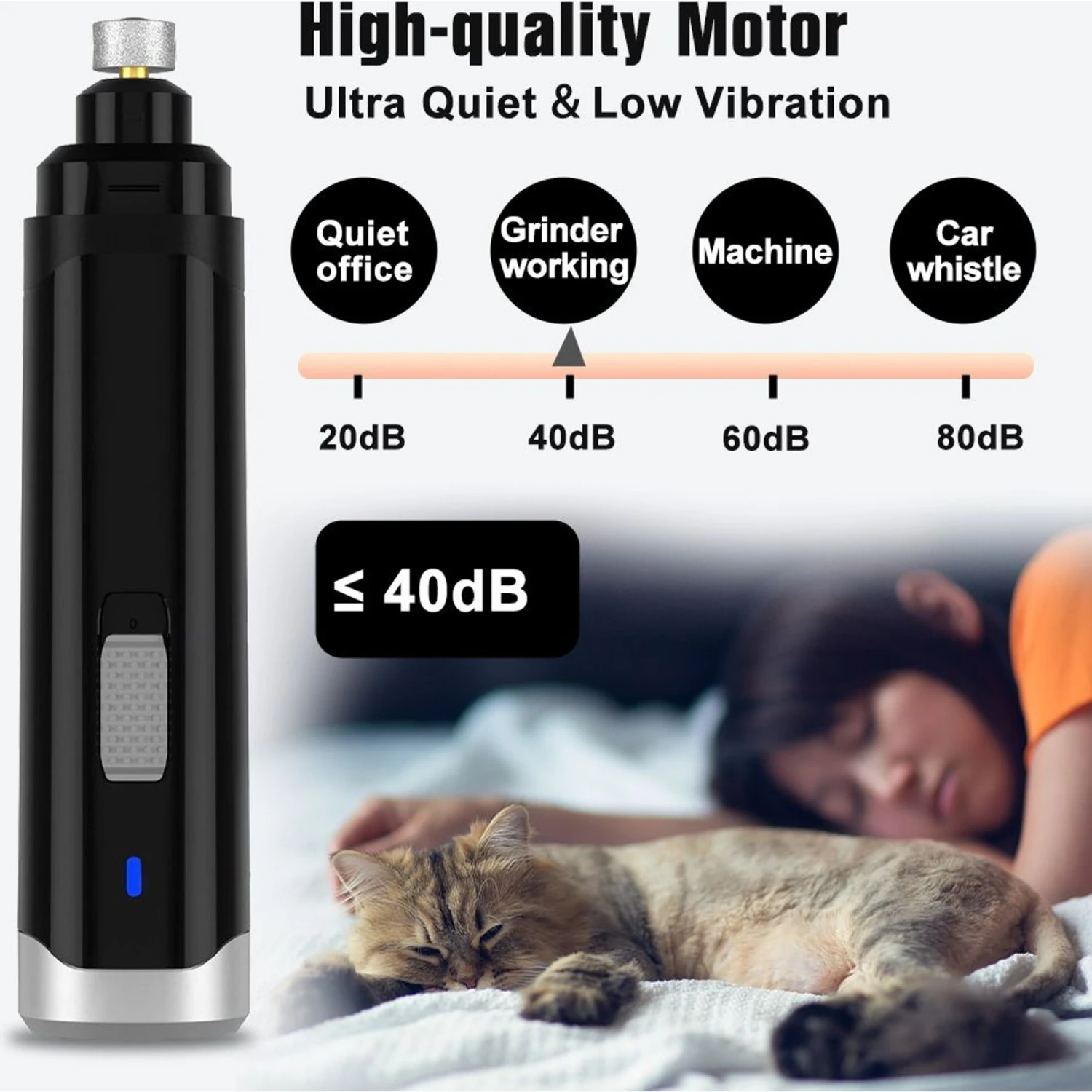 - Low noise and low vibration helps to reduce the chances of frightening your pet.