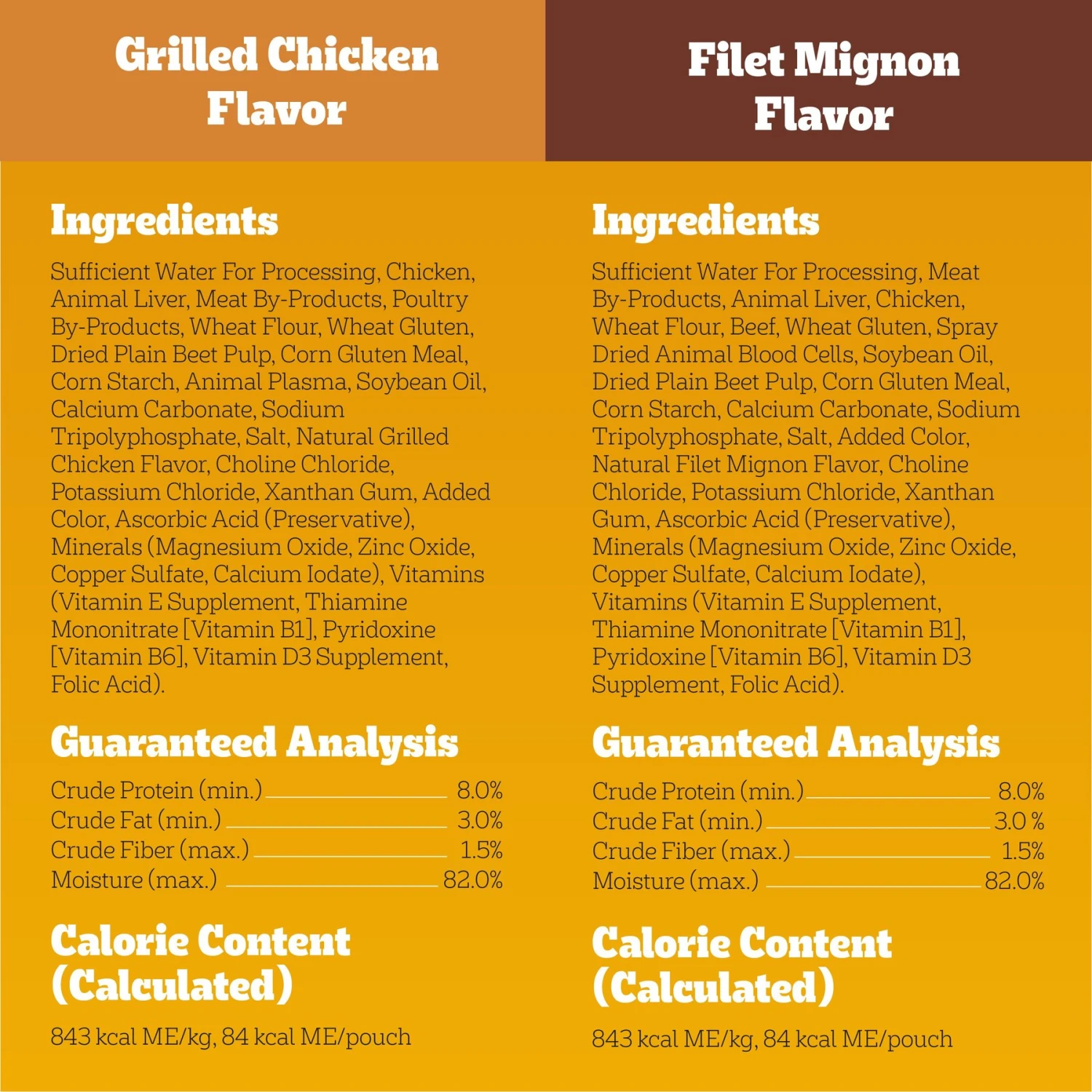 | Flavor | Beef Noodles, Grilled Chicken & Filet Mignon, Grilled & Hickory Chicken, Filet Mignon, Beef Noodles, Grilled & Chicken Caserole |