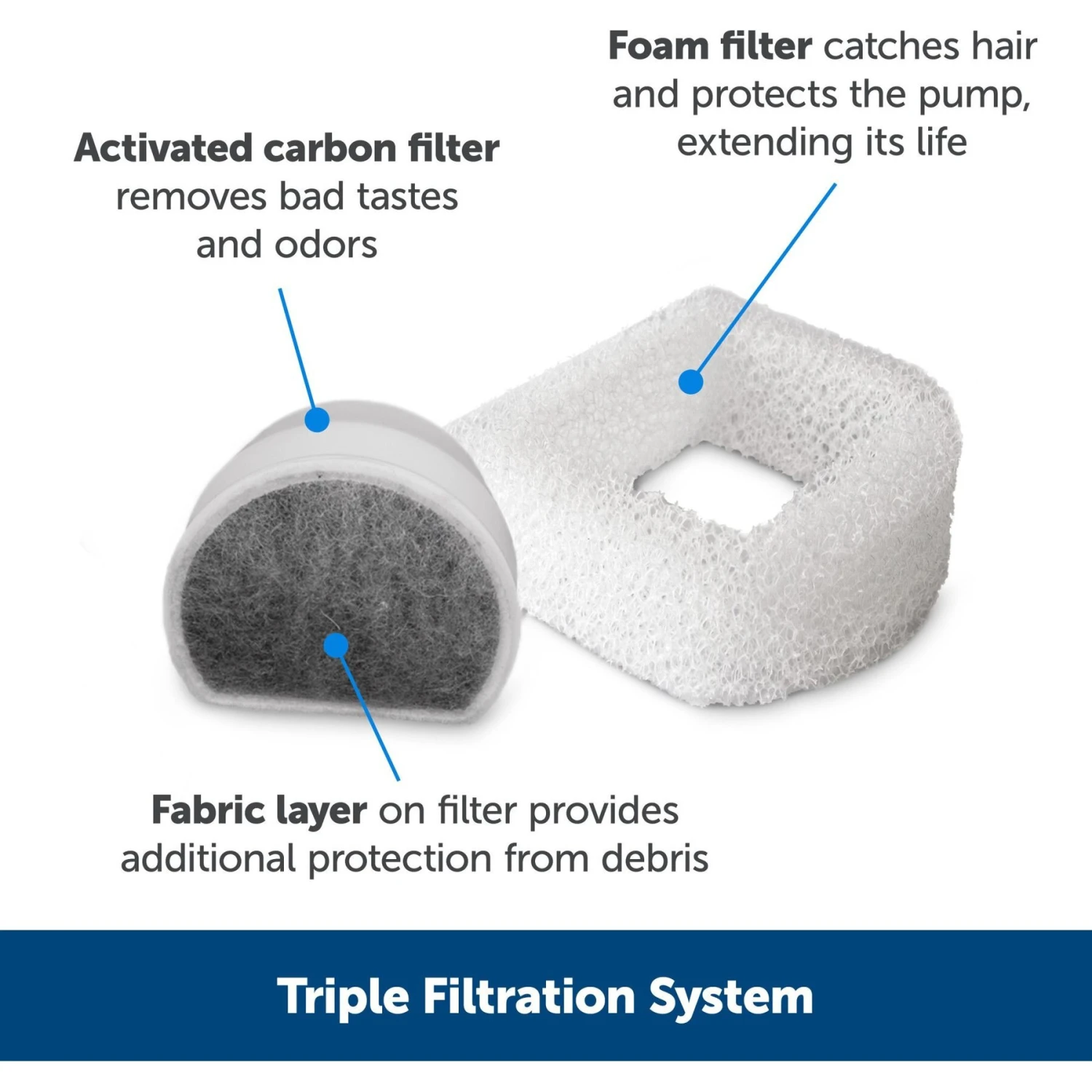 - With 360 construction, the fountain gives pets the option to drink from the tower or bowl, catering to the pickiest drinkers.