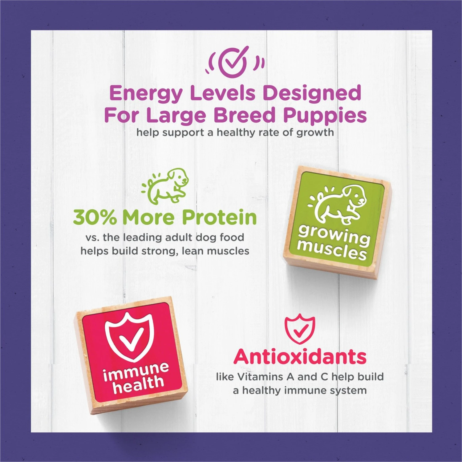 - Added calcium ensures healthy teeth and bones for your growing pup.