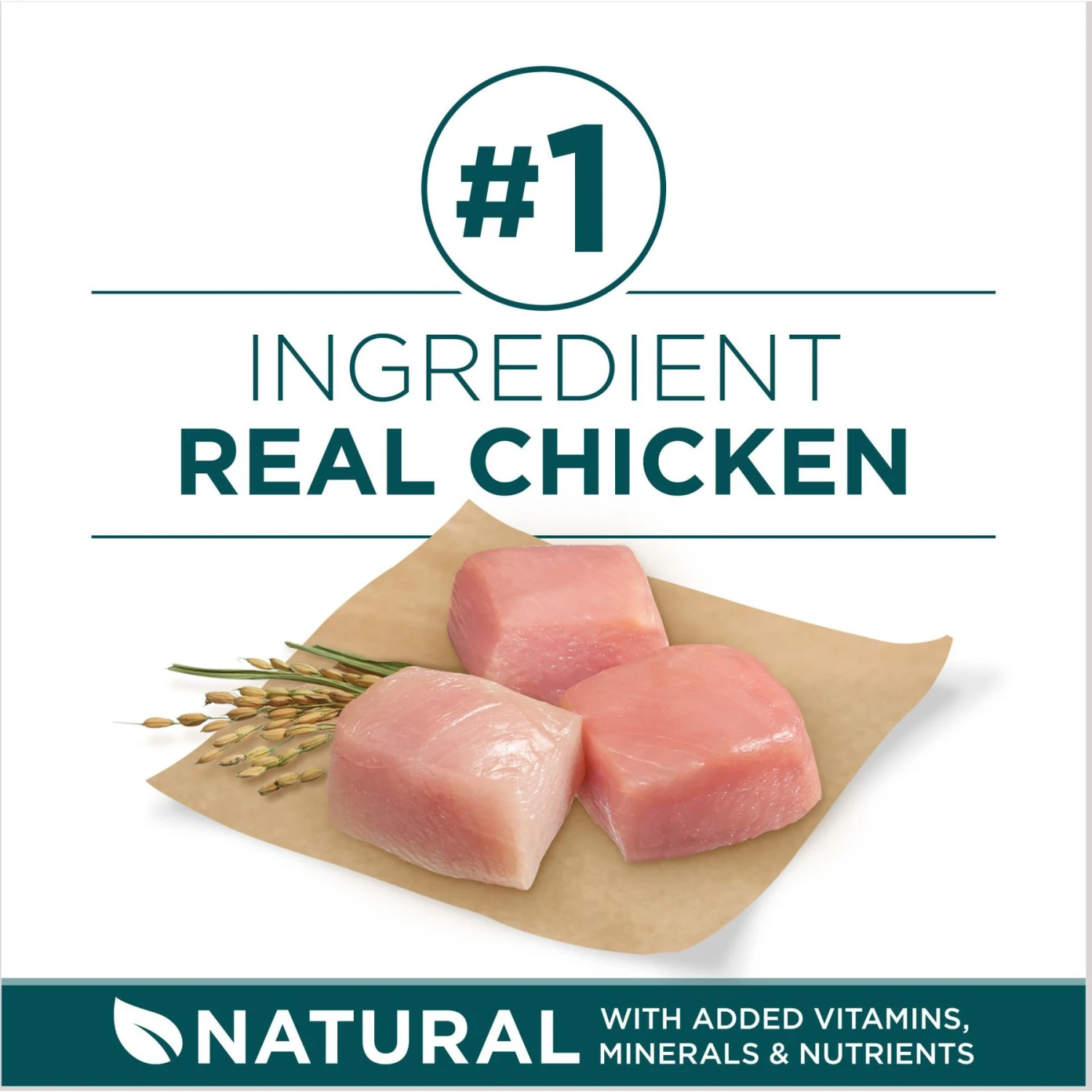 - Real chicken helps supply the protein your puppy needs for strong, growing muscles—including a healthy heart.