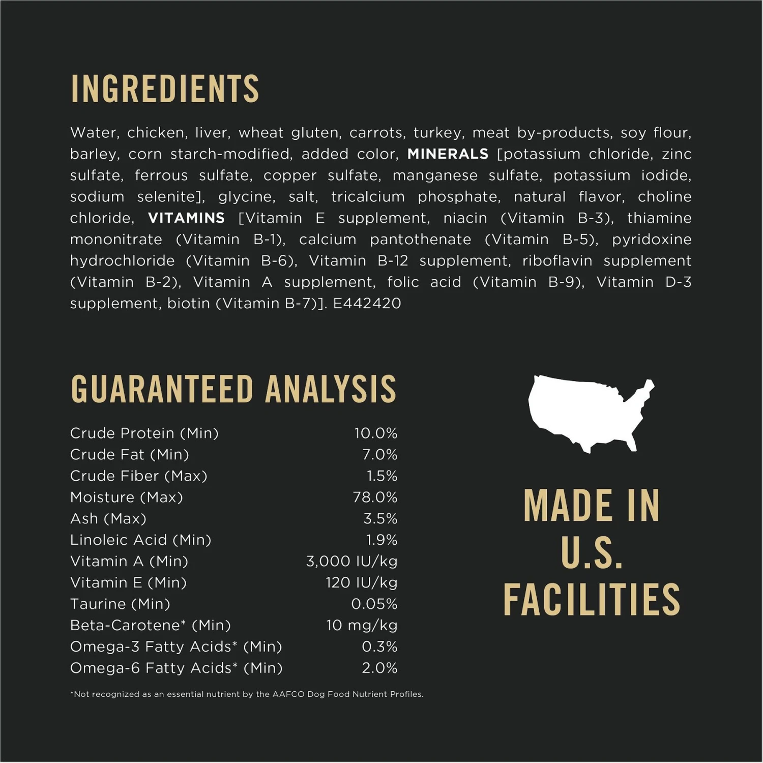 - This canned dog food with gravy is proudly manufactured at Purina-owned, U.S. facilities with no artificial colors, flavors or preservatives.
