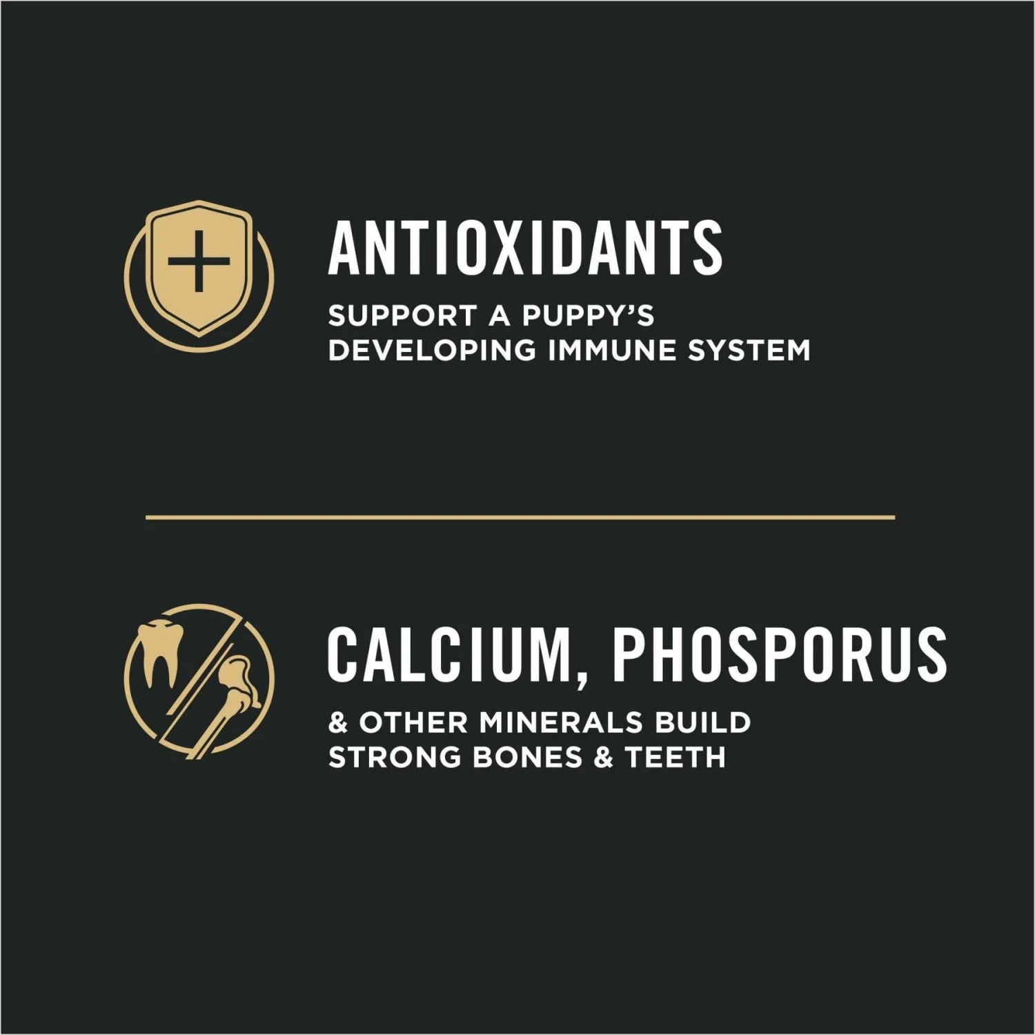 - Includes calcium, phosphorus, vitamin A and omega-6 fatty acids to help build your puppy’s strong bones and teeth and nourish his skin and coat.