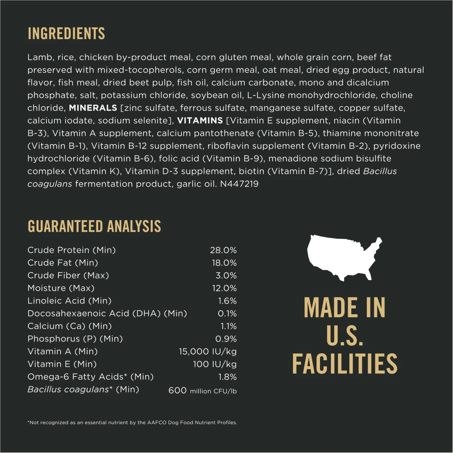 - Puppy food features real lamb as the #1 ingredient and has fish oil derived DHA to nourish your pup’s brain and vision development.
