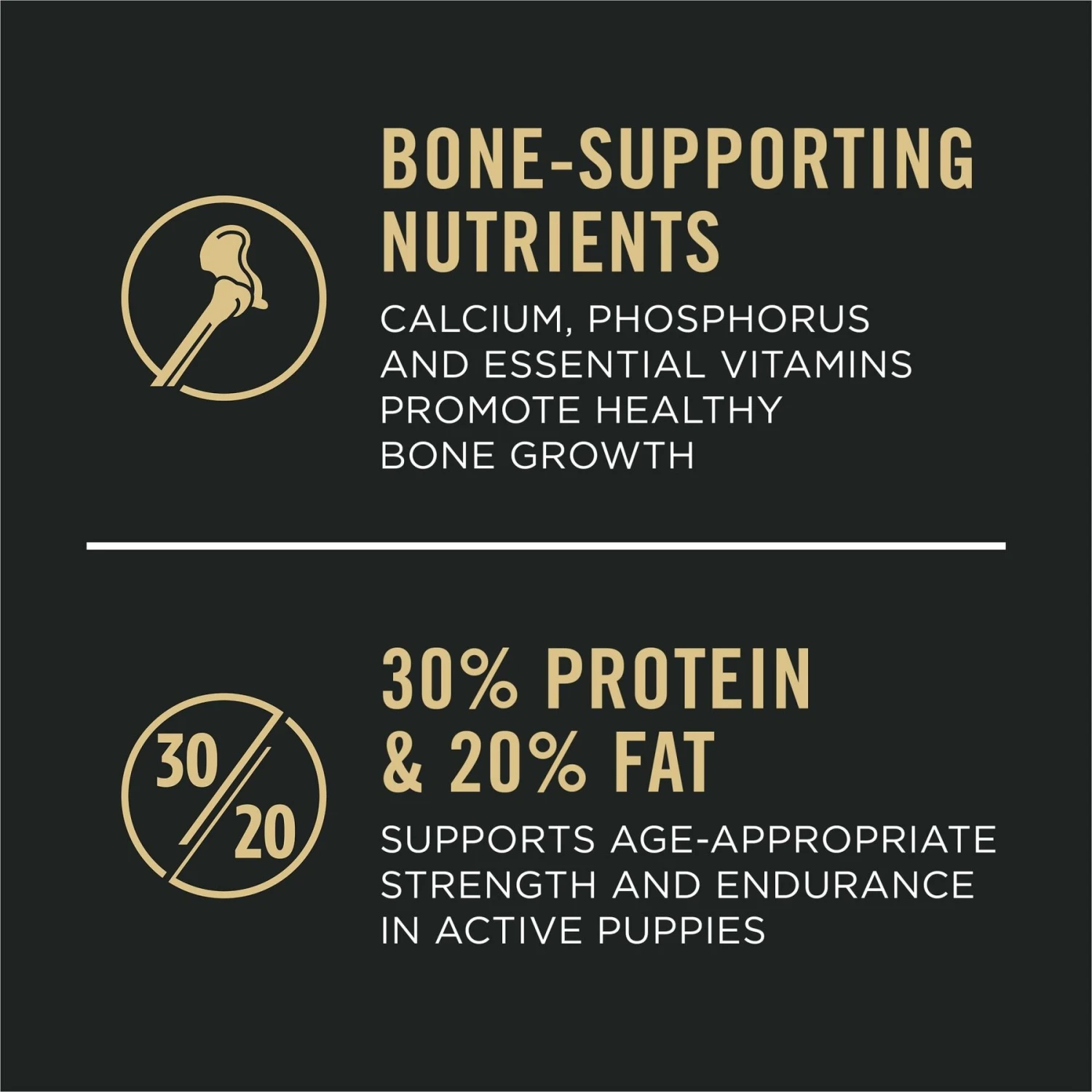 - Created with 30% protein and 20% fat to support a healthy growth rate and age-appropriate strength and endurance in your active puppy.