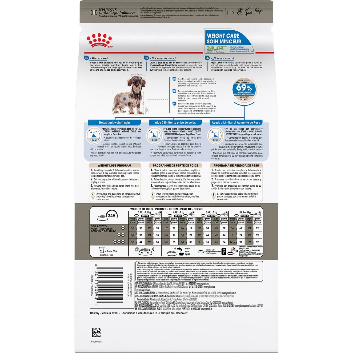 - Royal Canin X-Small Weight Care Adult Dry Dog Food can help many slightly overweight dogs lose weight within 2 months.