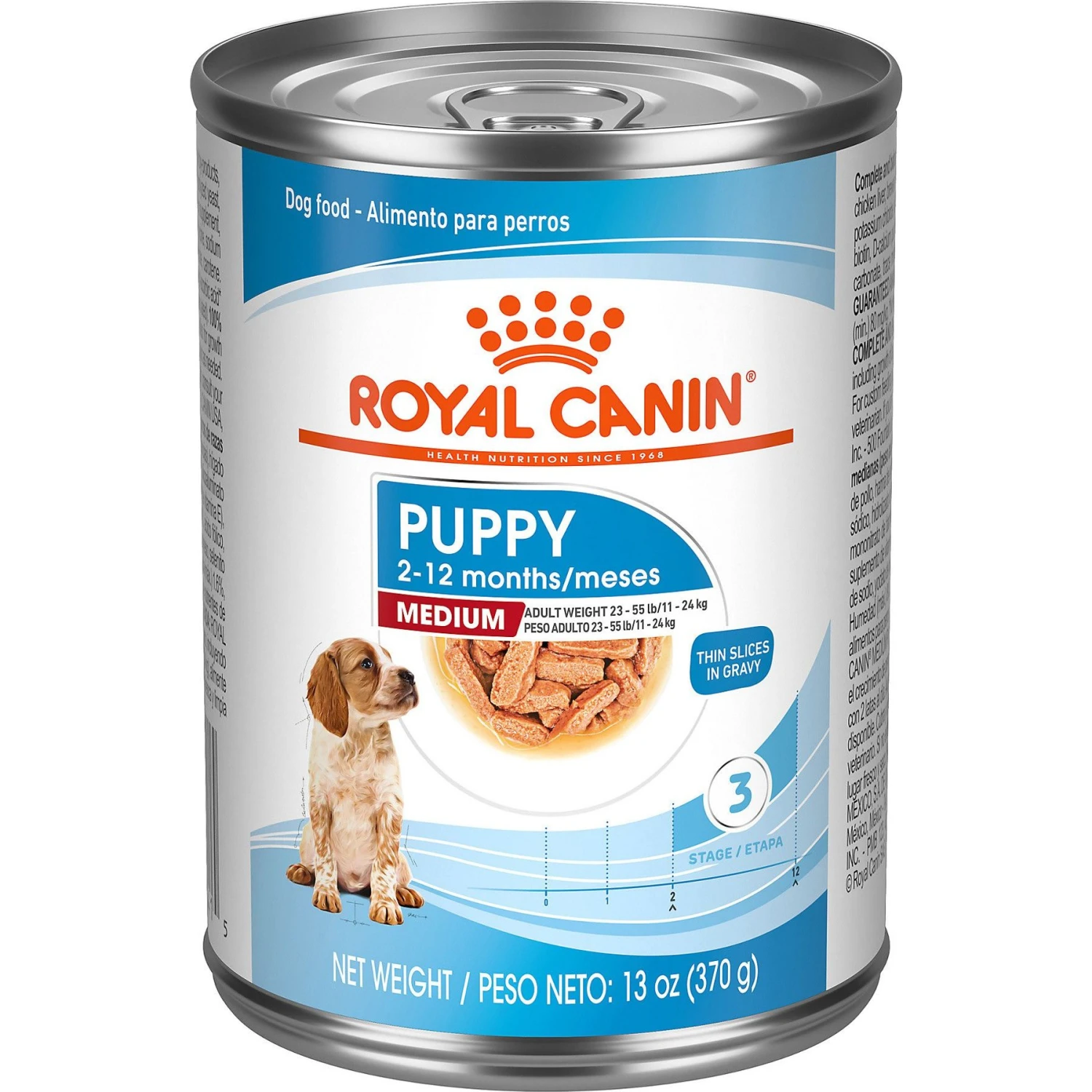 - Medium breed wet puppy food formulated for puppies from 2 to 12 months old with an expected adult weight of 23-55 lb.