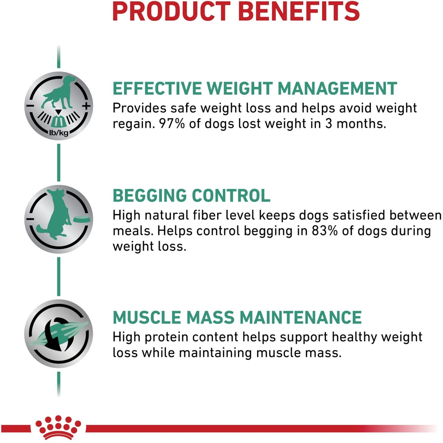 - Helps dogs maintain lean muscle mass and supports weight management as dogs achieve an ideal weight.